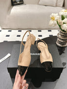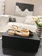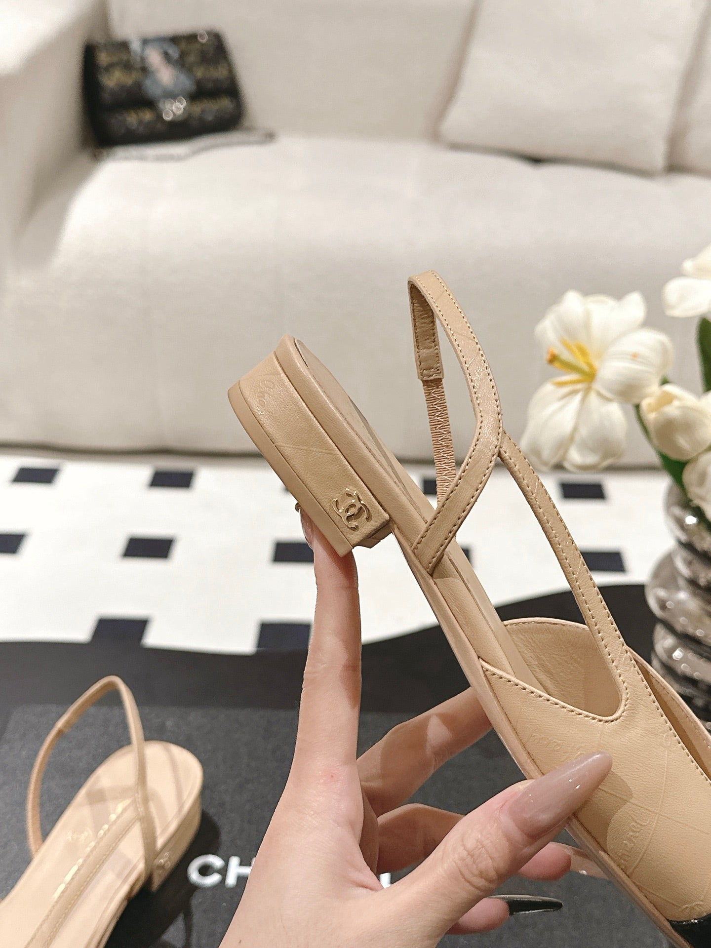 cc 25c slingback flat 15mm cross line pattern beige lambskin 237490