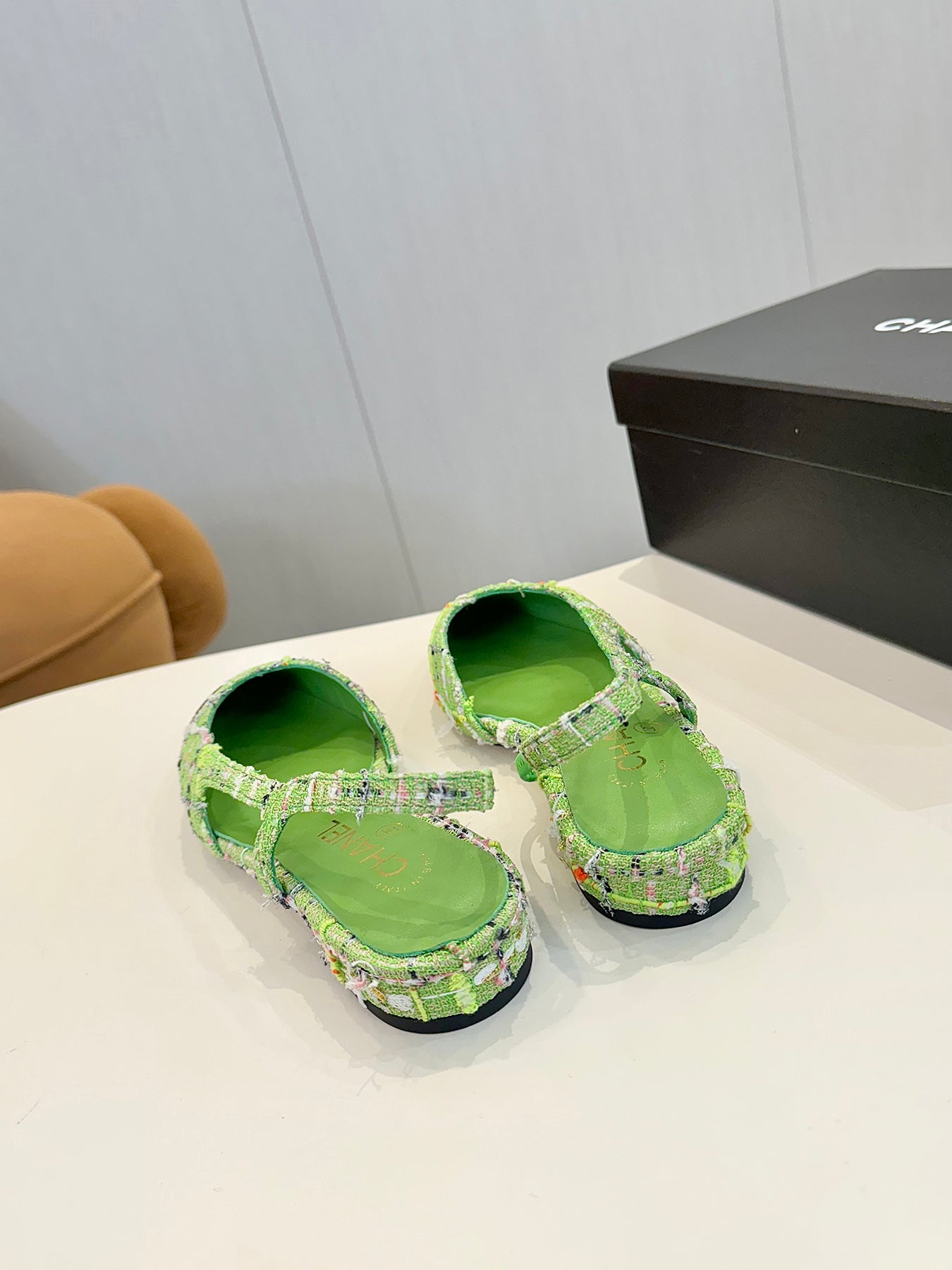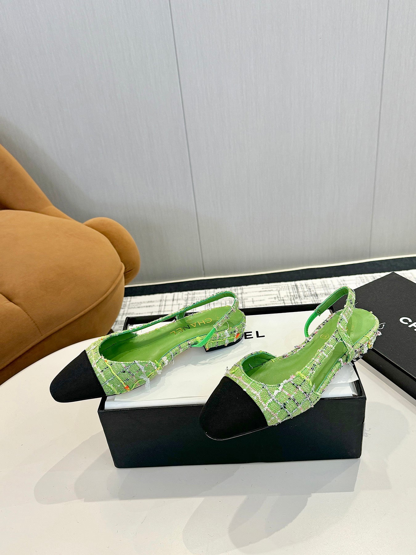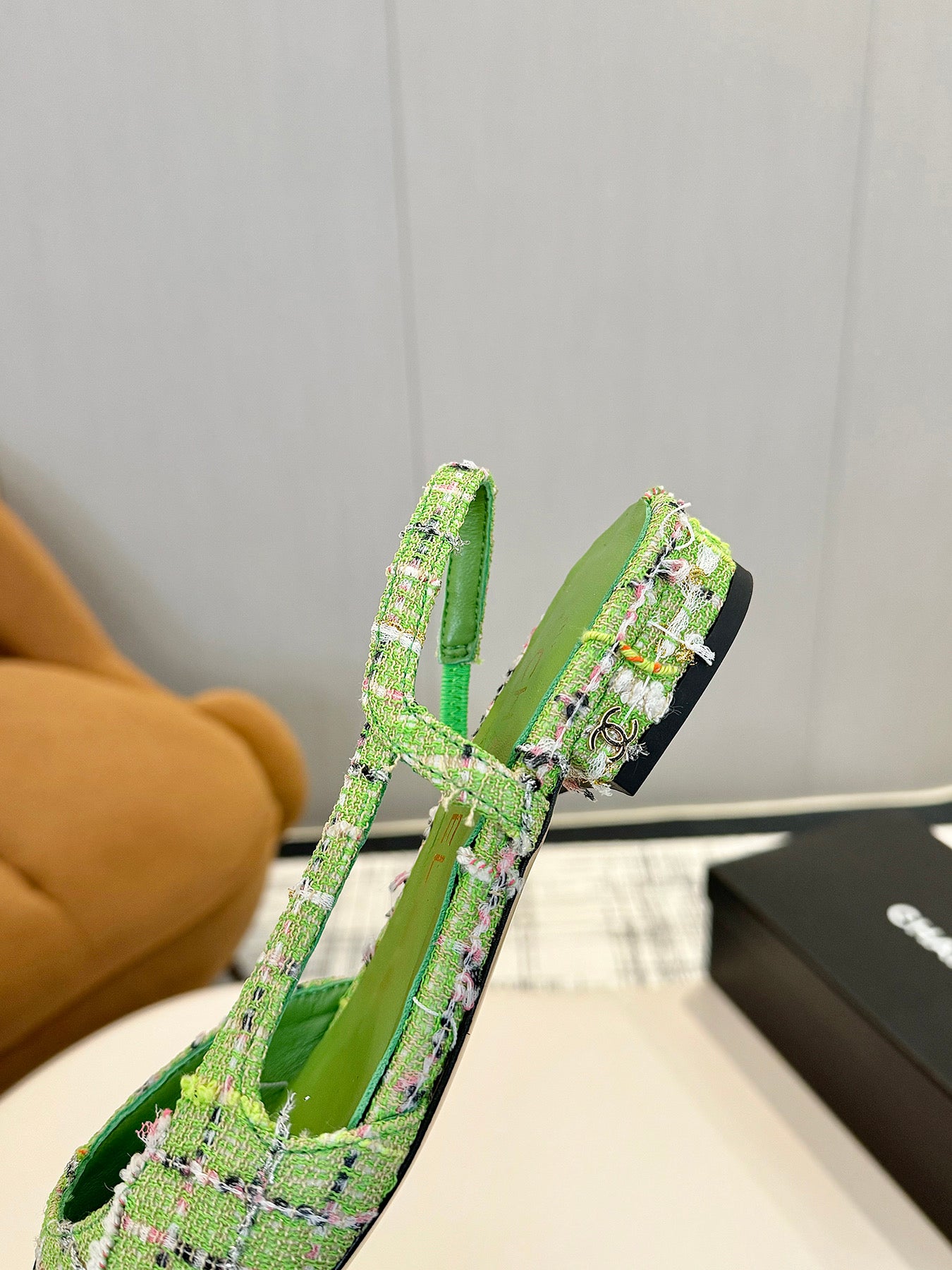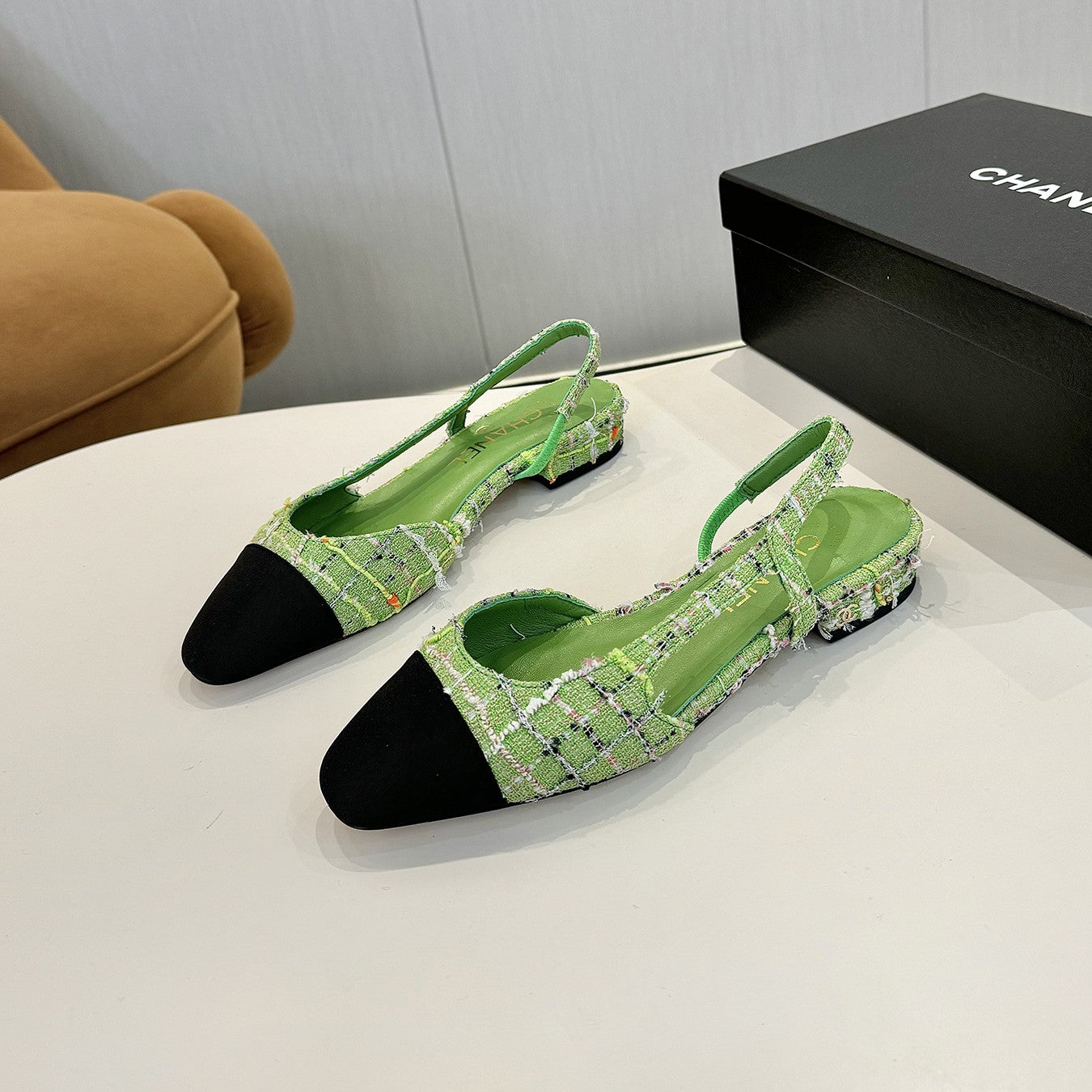 cc 25c slingback flat green tweed black grosgrain 233611