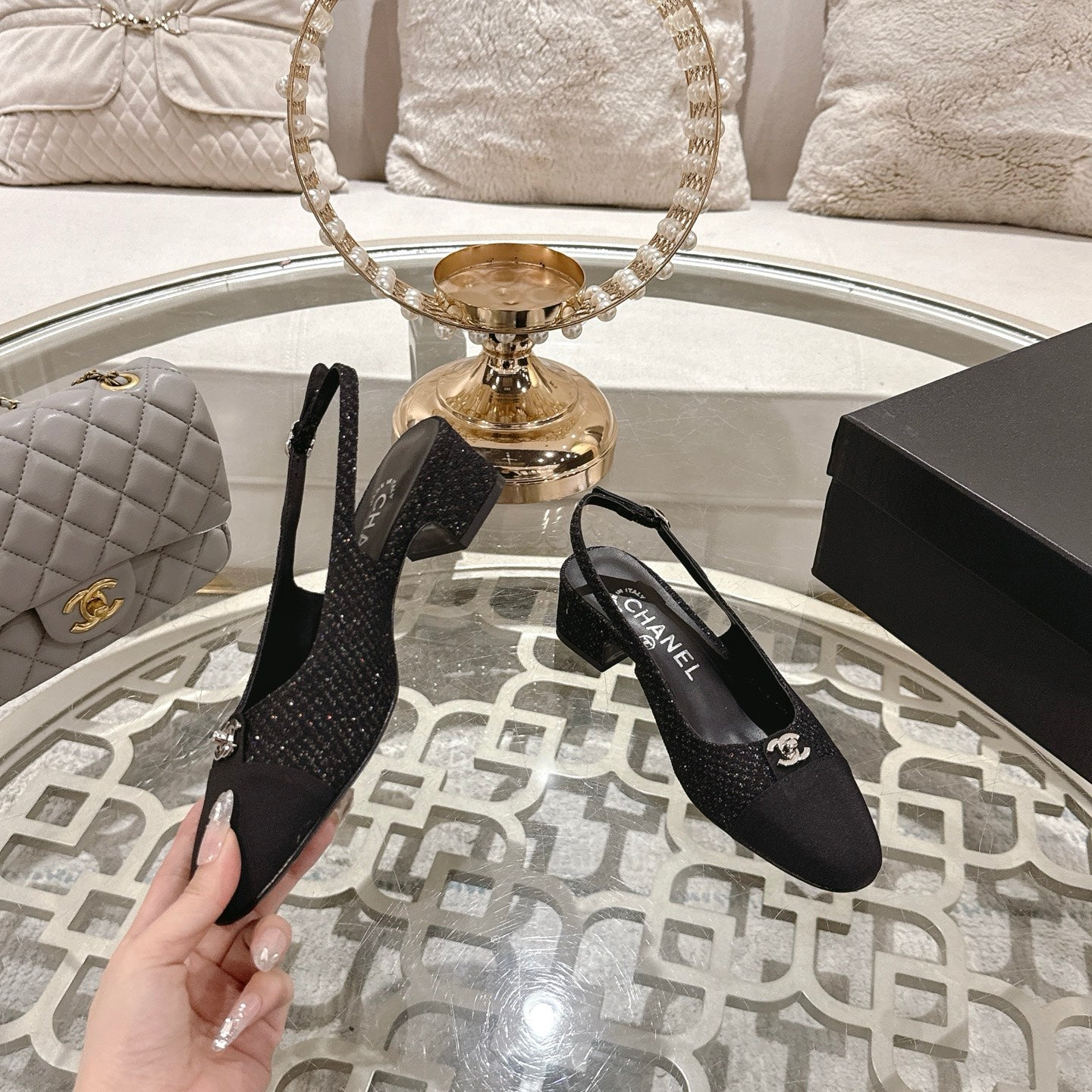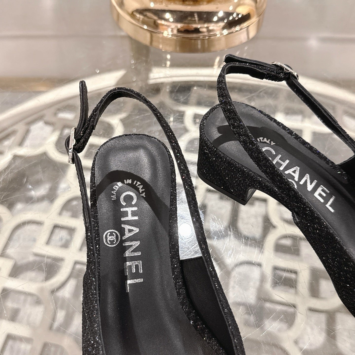 CC 25ss Slingbacks Black 35mm Glitter Fabric & Grosgrain 432609