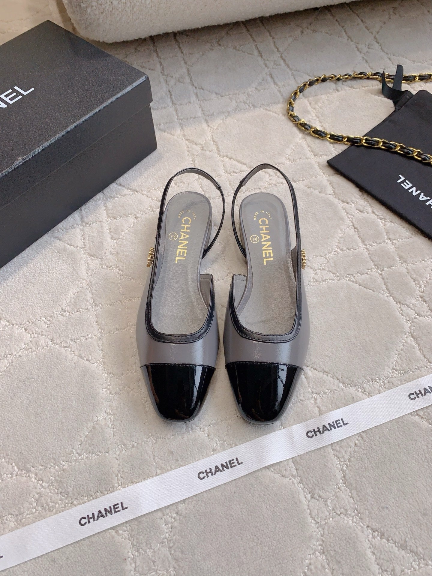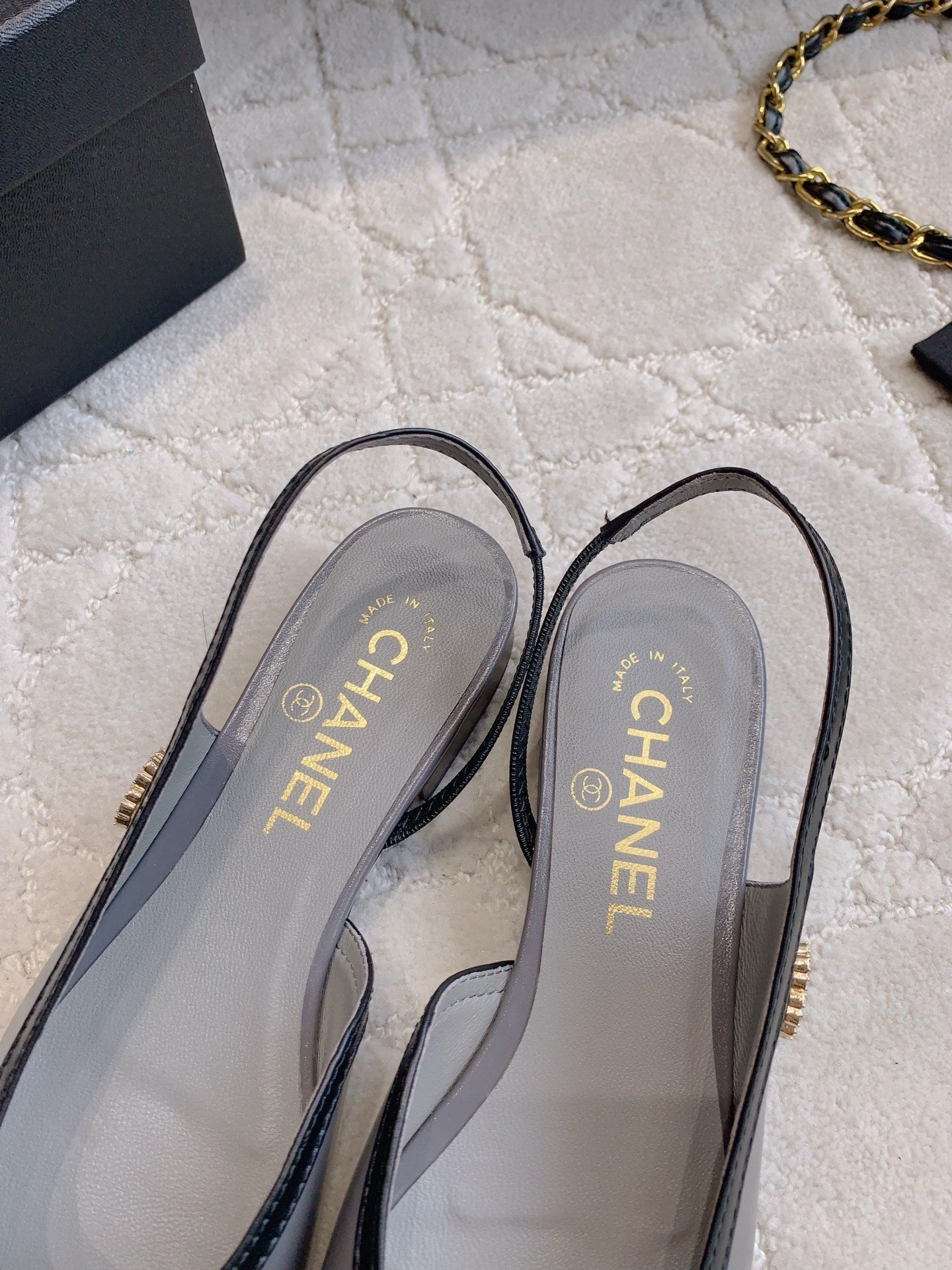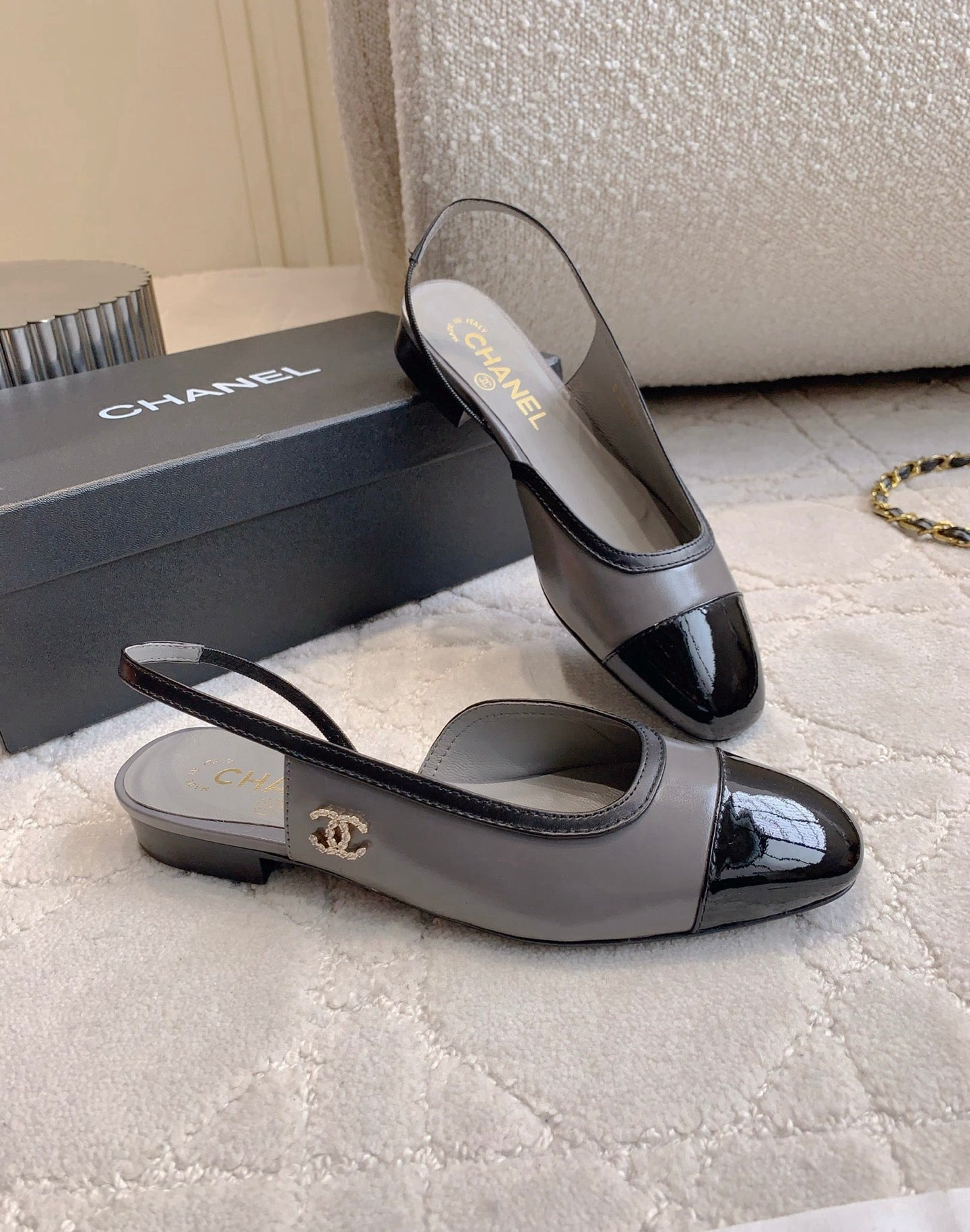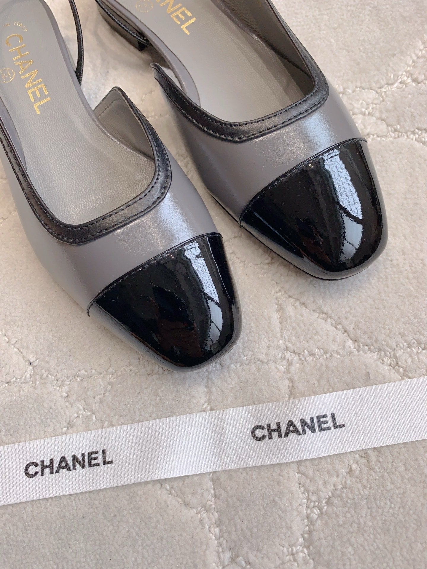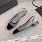 CC Cap Toe Slingback Black Gray Lambskin 404282