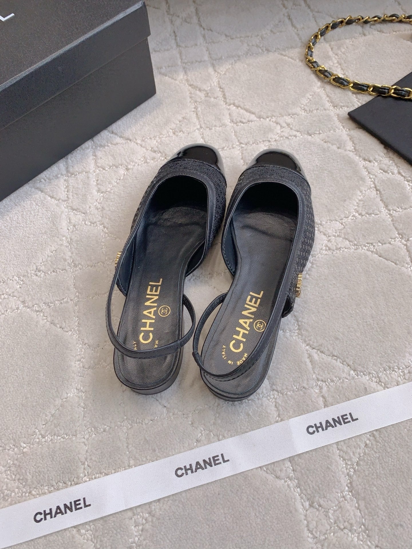 CC Cap Toe Slingback Black Lamskin & Glitter 404279