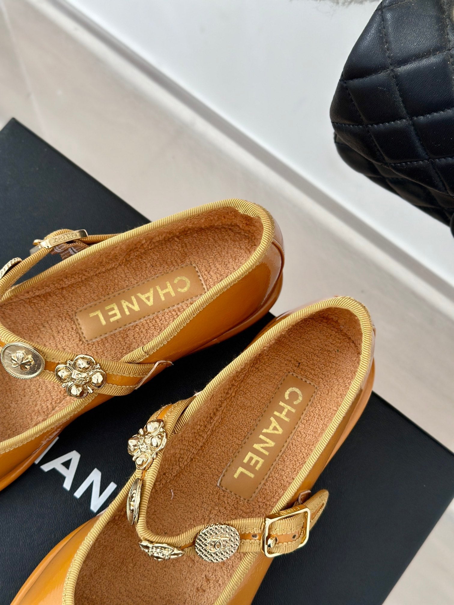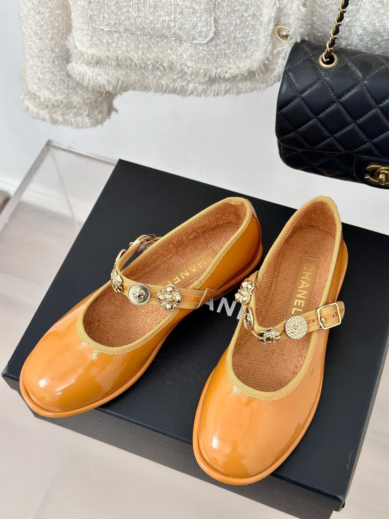 CC Mary Jane Glossy Orange Brown Cowhide And Lambskin