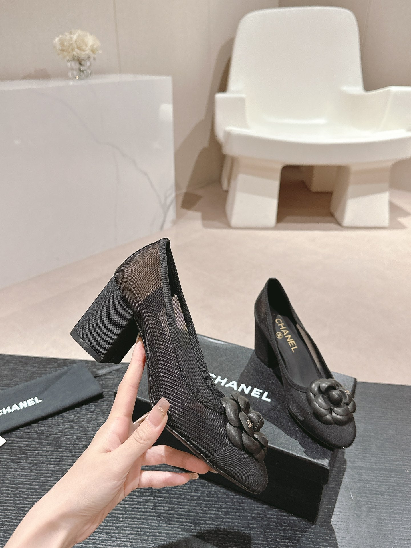 cc pump 60 flower black fabric