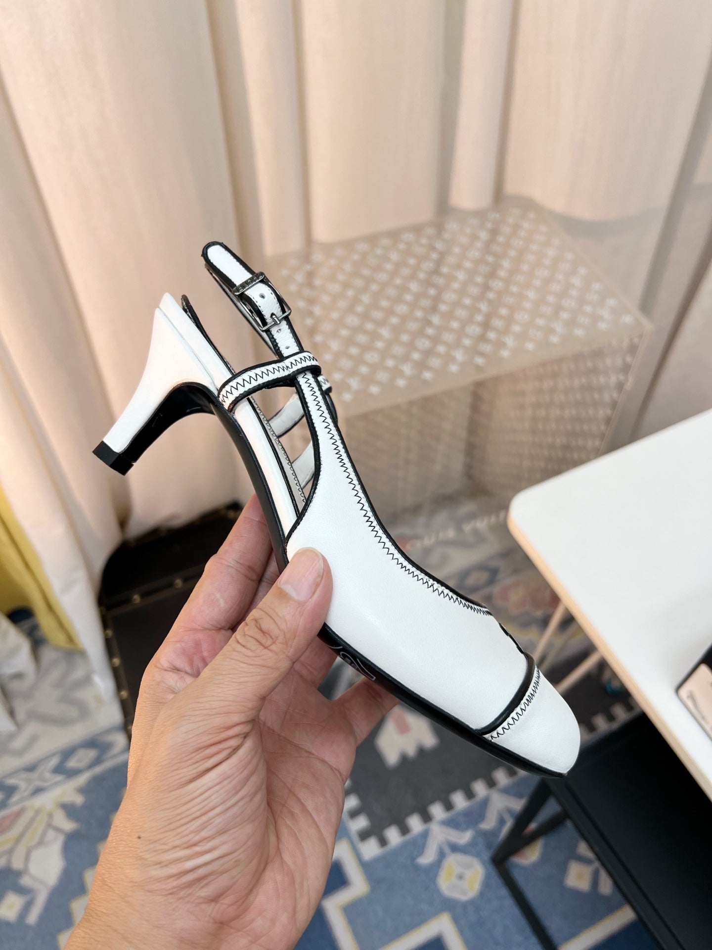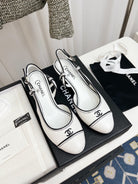CC Slingback Heels With Black Contrast Stitching White Lambskin 476712