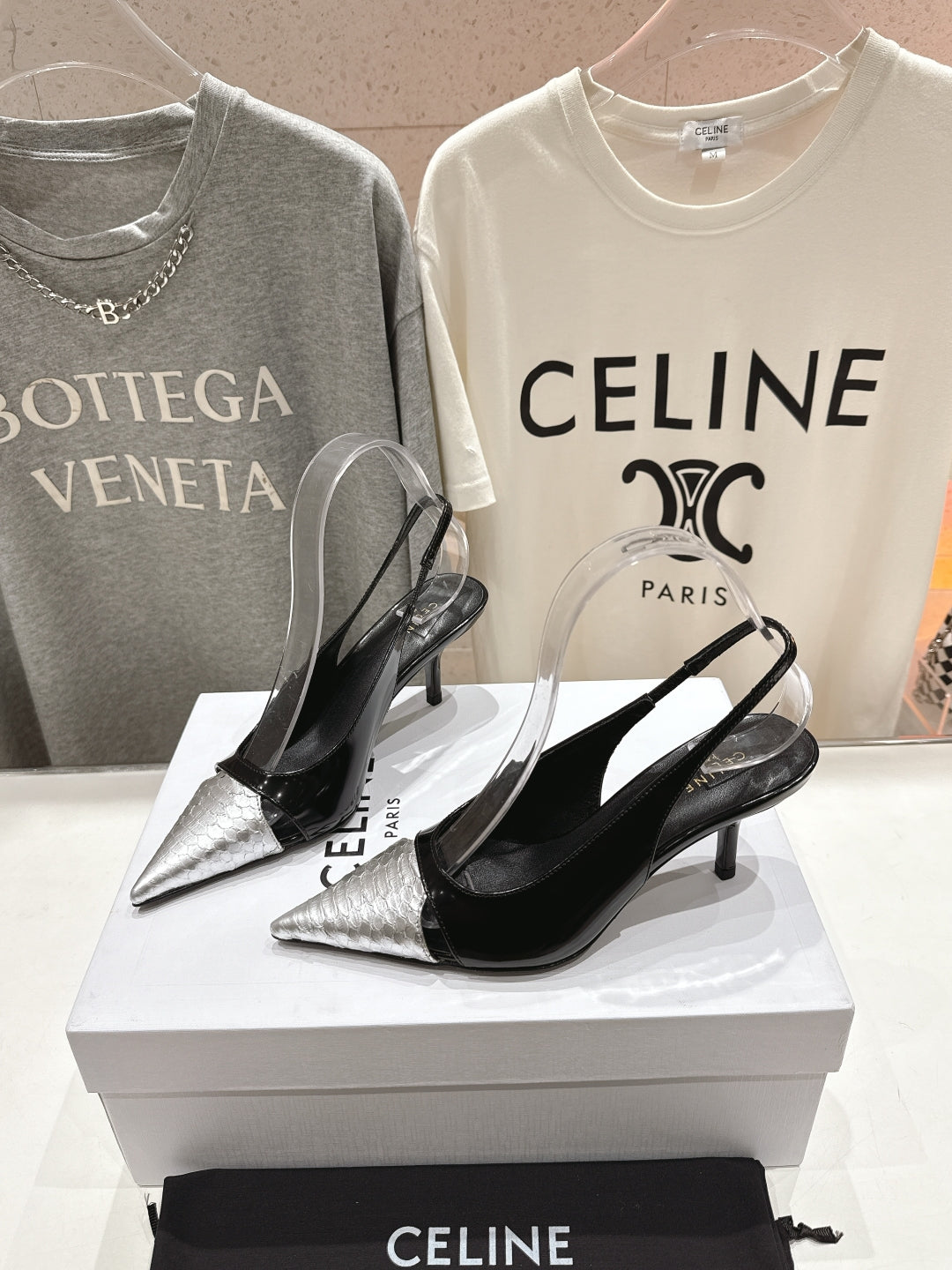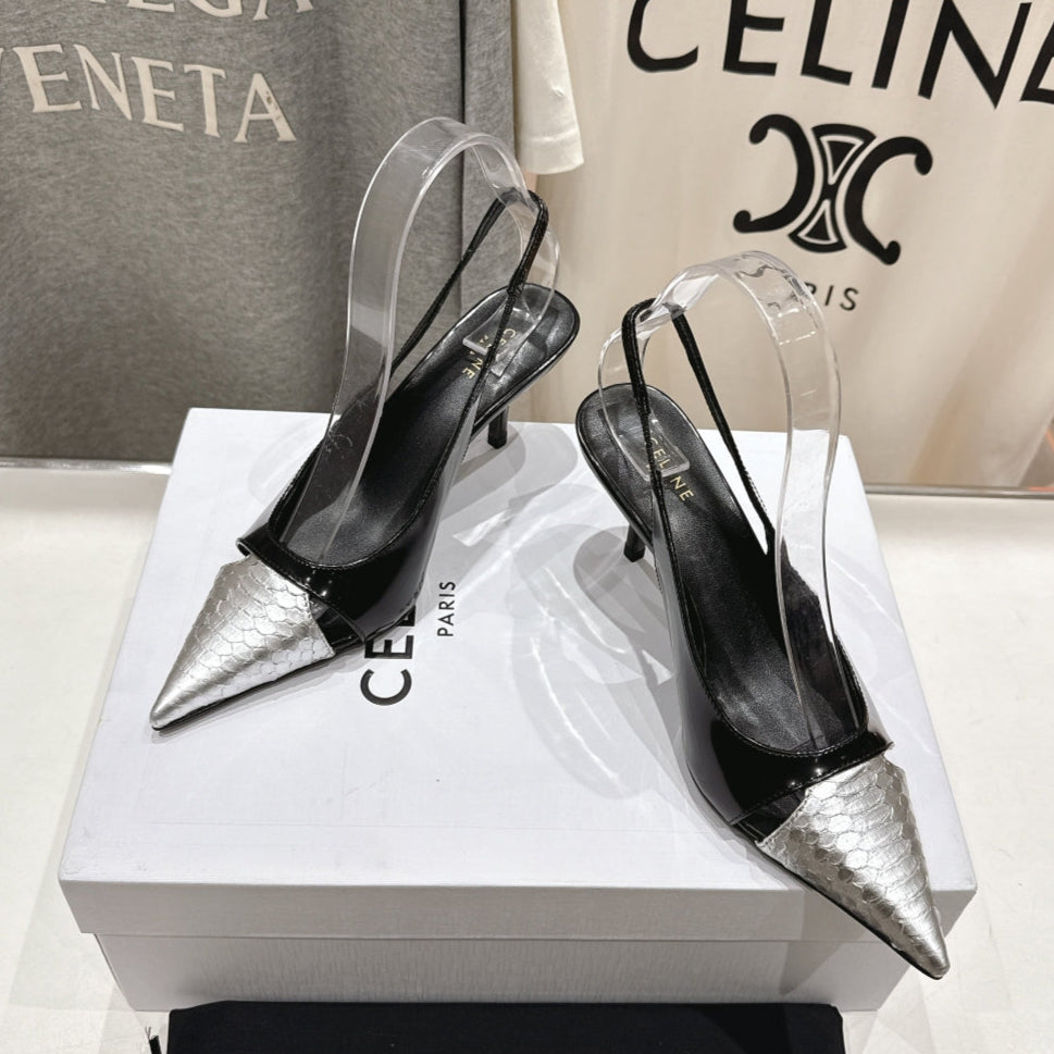 Celine 25C Slingback Pump Black mix Silver Sheepskin 236772