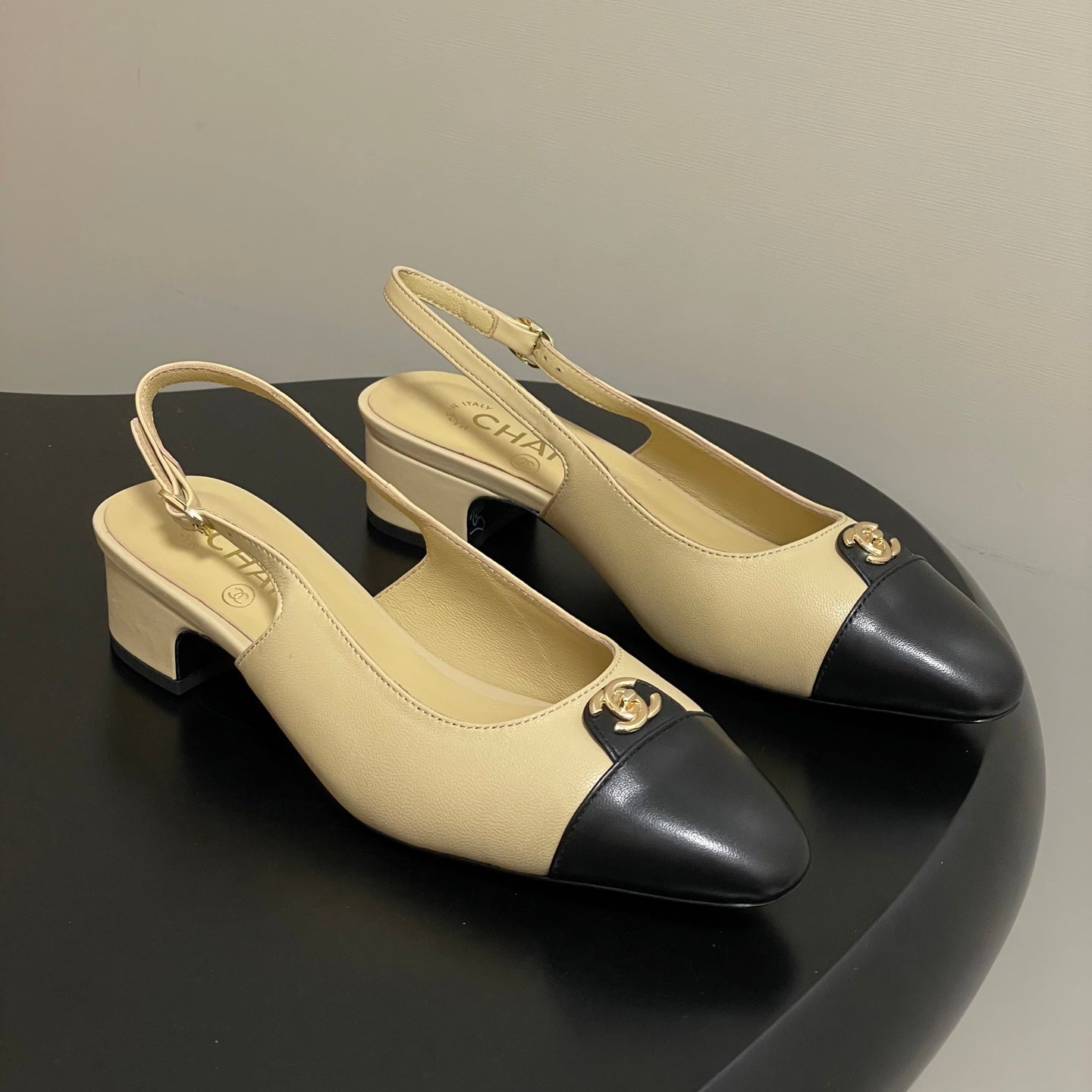 Chanel 25 Slingback 30mm Beige Black Lambskin 473213
