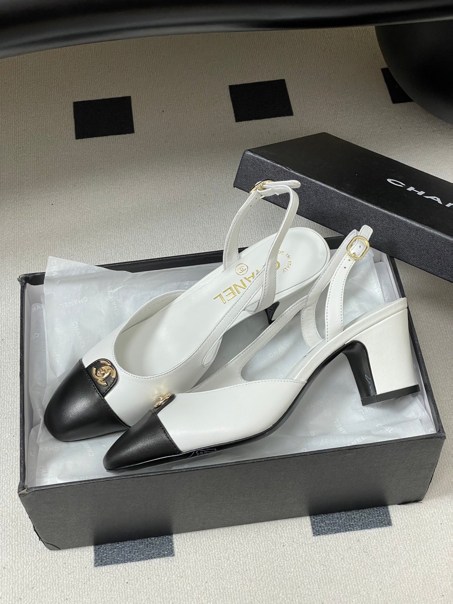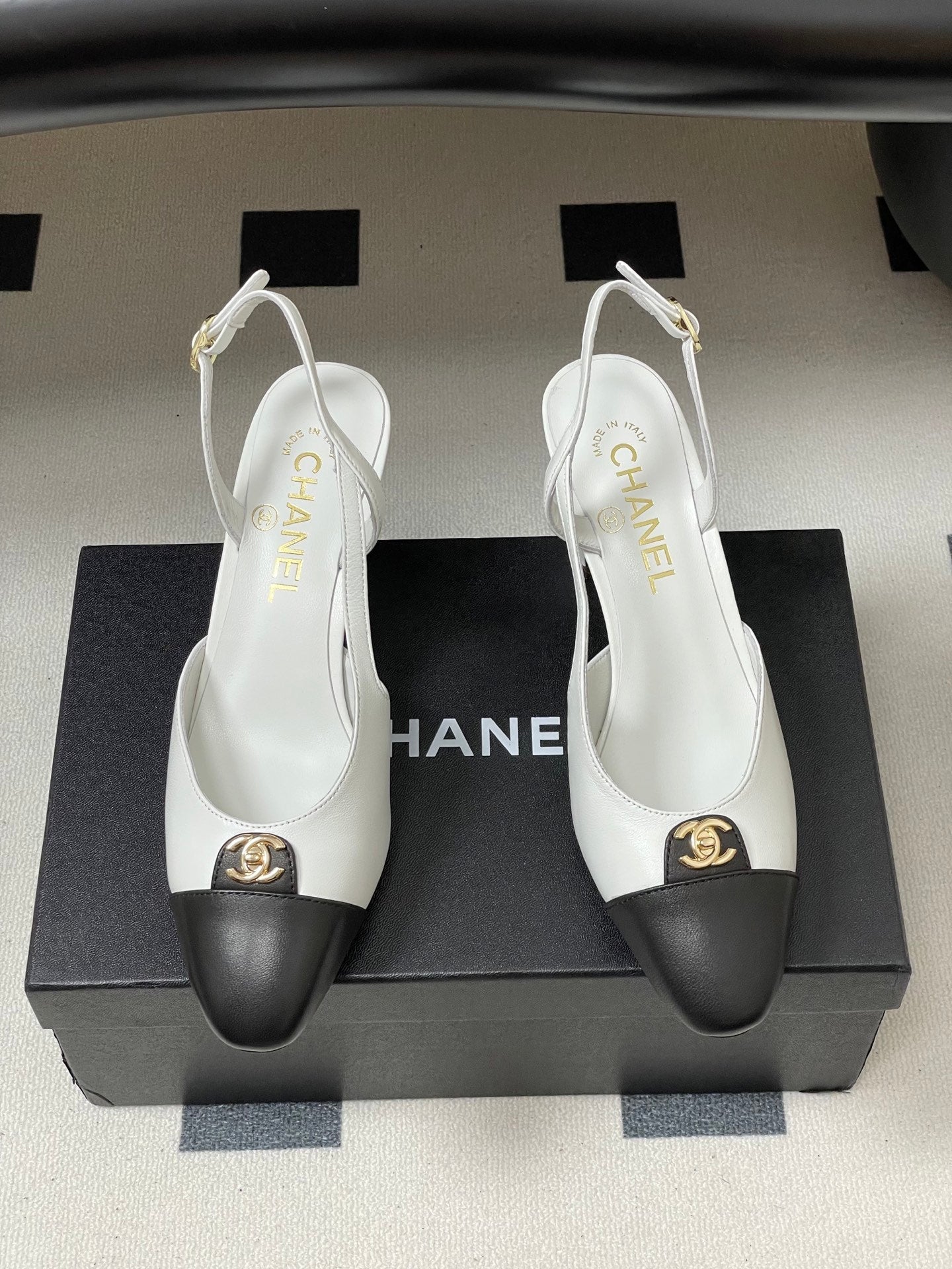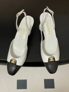 Chanel 25 Slingback 50mm White Black Lambskin 473217