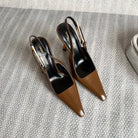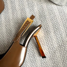 LEE SLINGBACK PUMPS 105 IN BROWN PATENT LEATHER GOLD HEEL