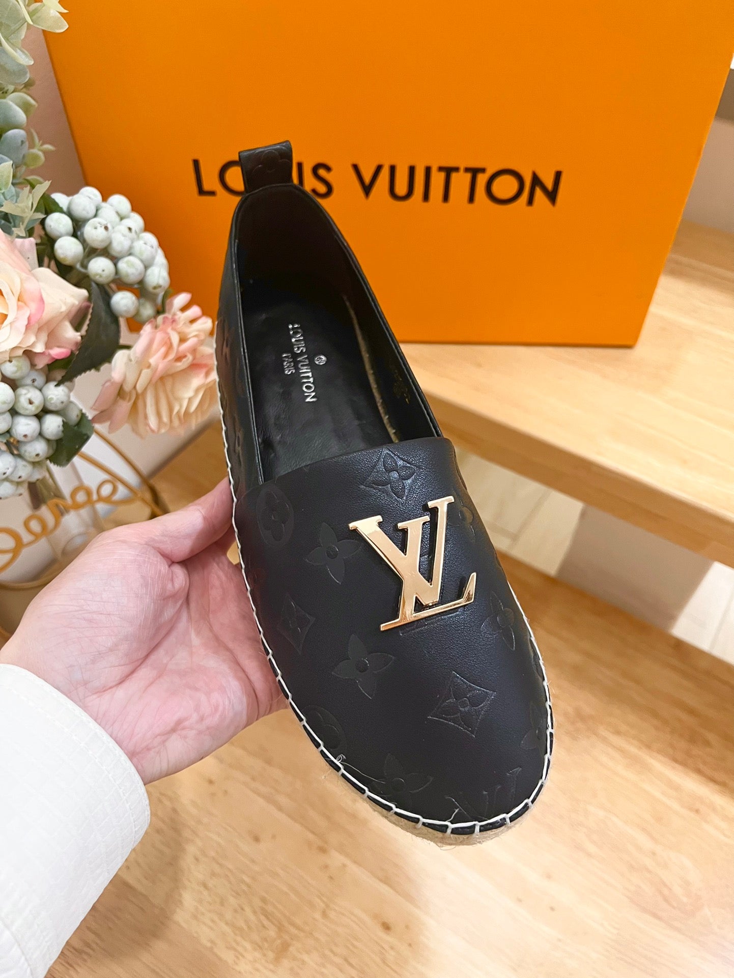 LV Embossed Fisherman Espadrilles Black Sheepskin 240629