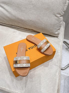 LV Flat Mules pairs raffia brown monogram cowhide 383724