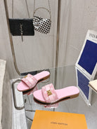 LV Flat Mules pairs raffia pink monogram cowhide 383723