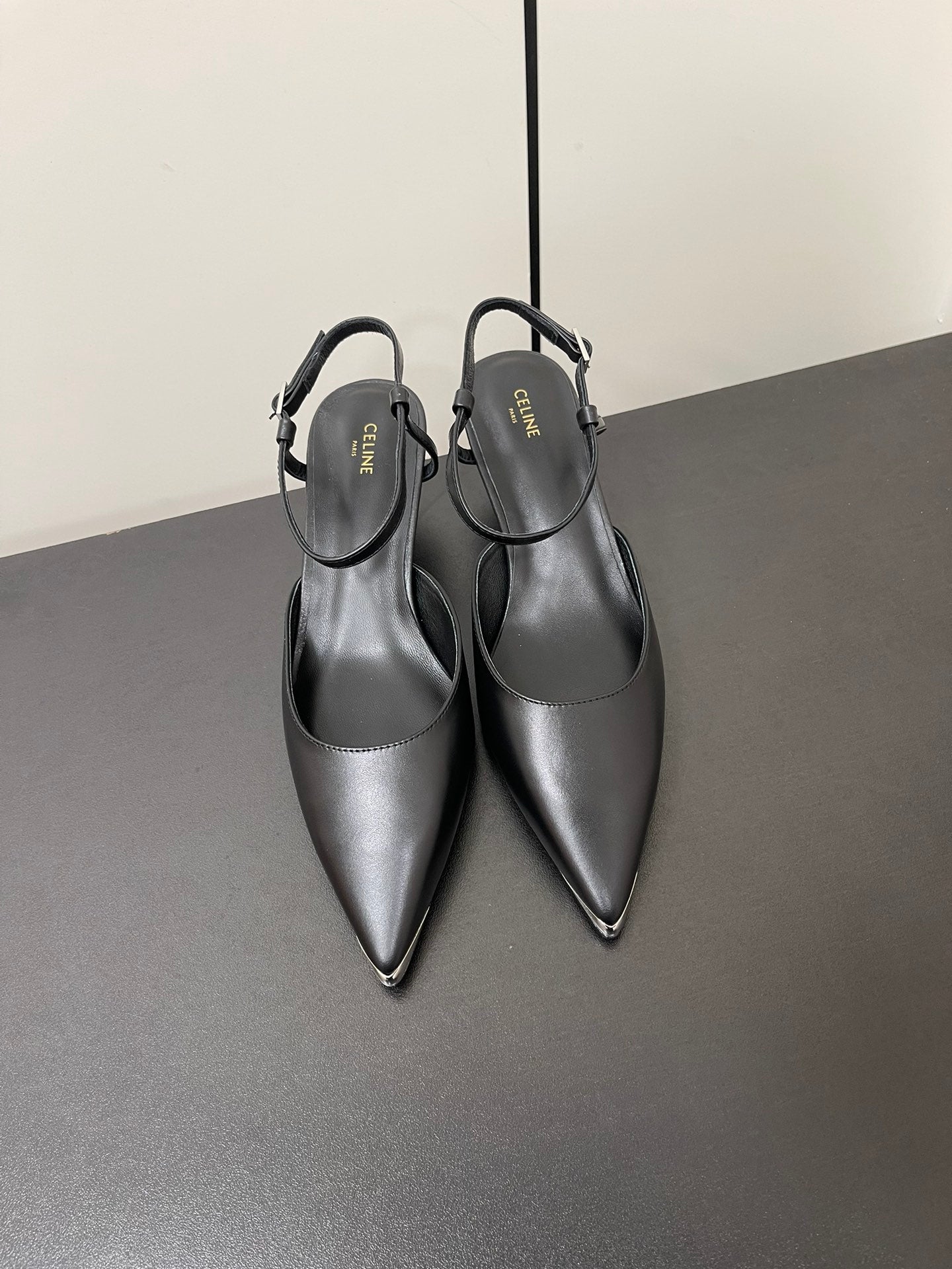 MORRAINE SLINGBACK PUMPS IN BLACK CALFSKIN