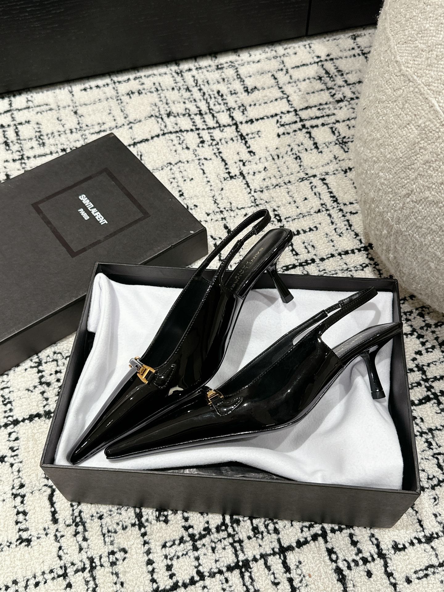 SL CARINE SLINGBACKS PUMP 45 BLACK CALFSKIN