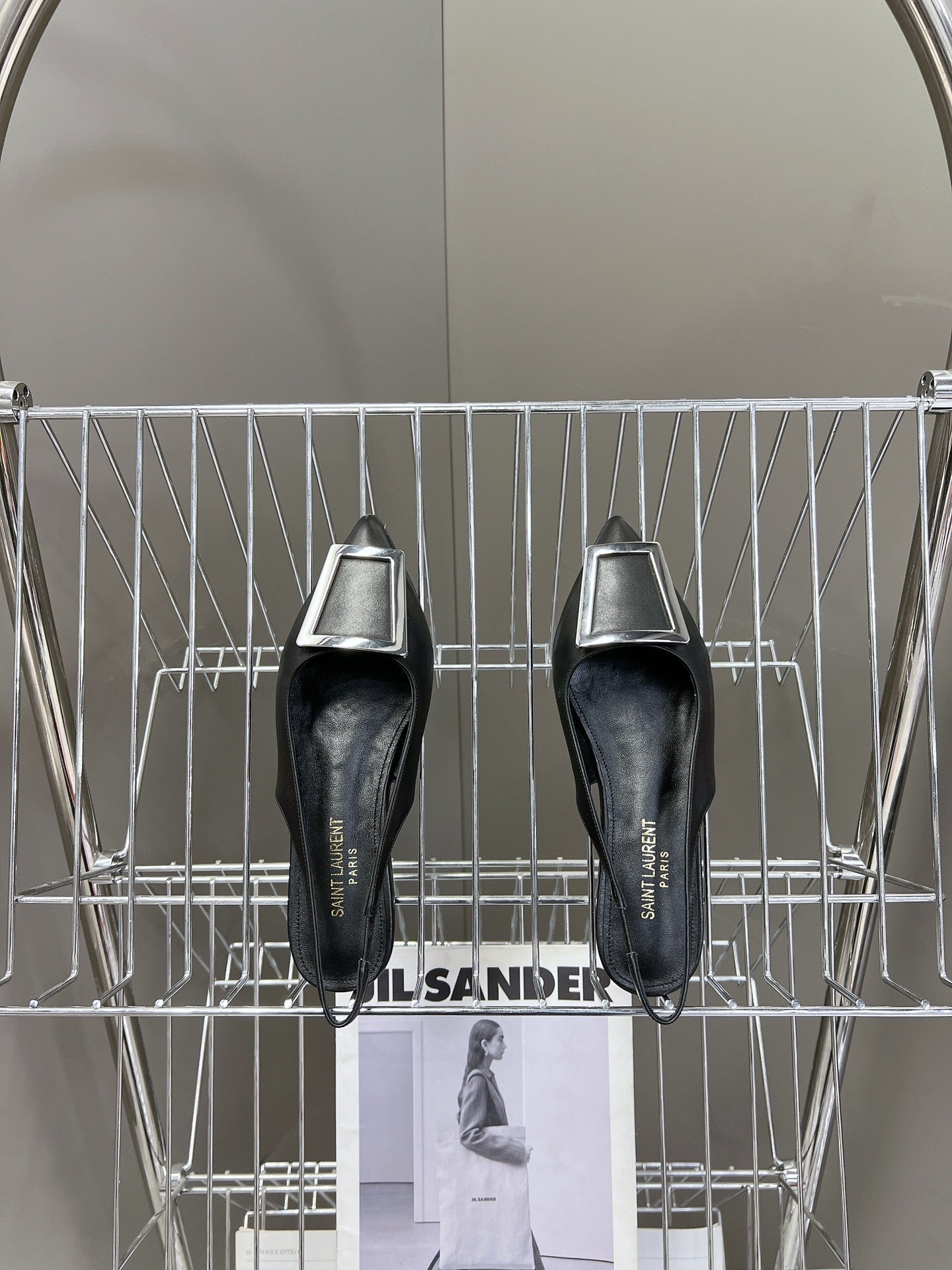 SL SQUARE BUCKLE SLINGBACK BLACK CALFSKIN