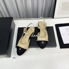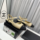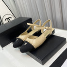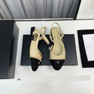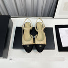 slingback beige lambskin black leather chain grosgrain