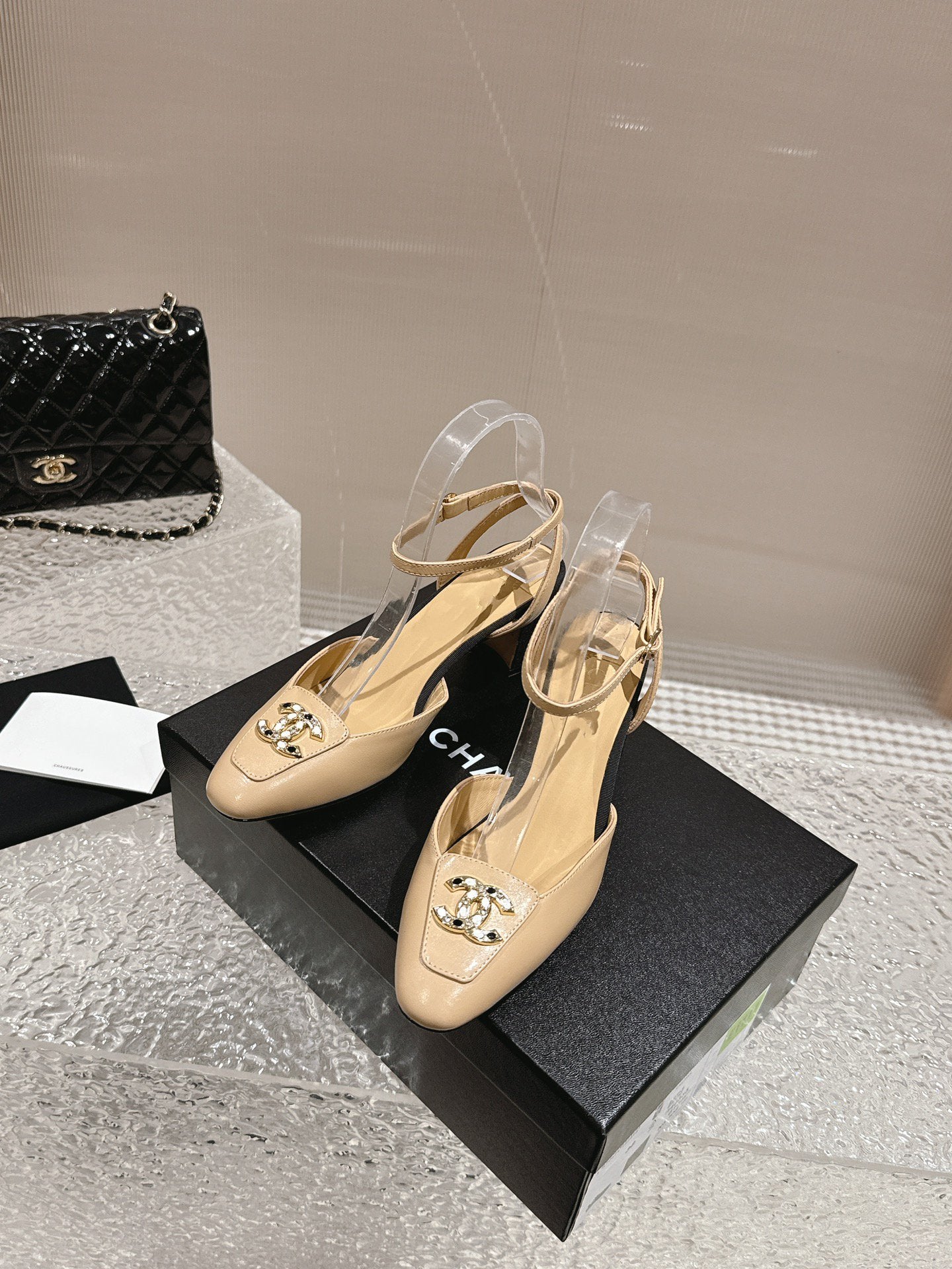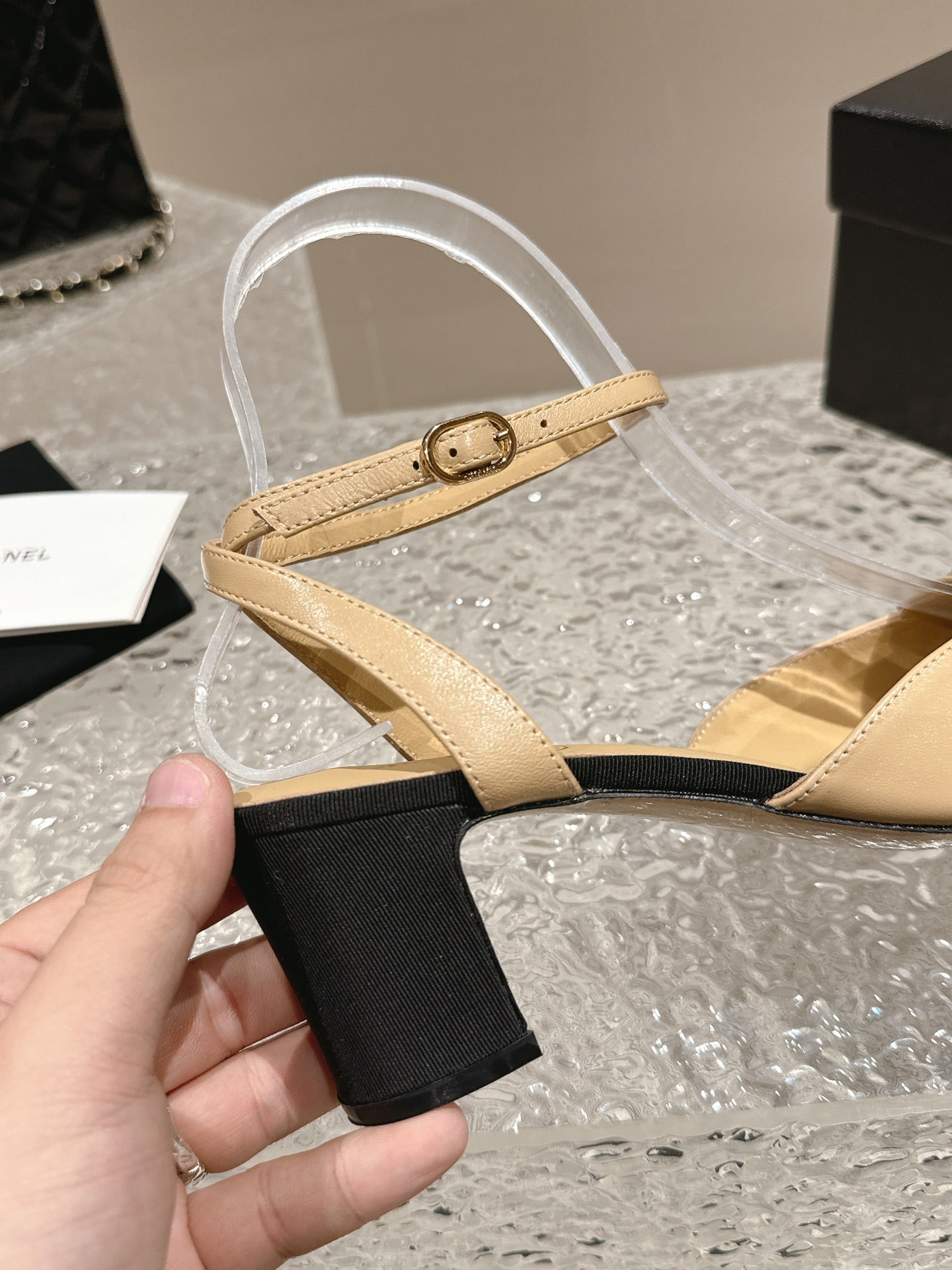 slingbacks 60 beige black lambskin cc logo