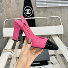 slingbacks 95 pink tweed black patent calfskin