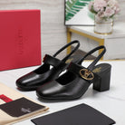 The Bold Edition Vlogo Slingback 65 Deep Mouth Half Drag Heels Black Calfskin