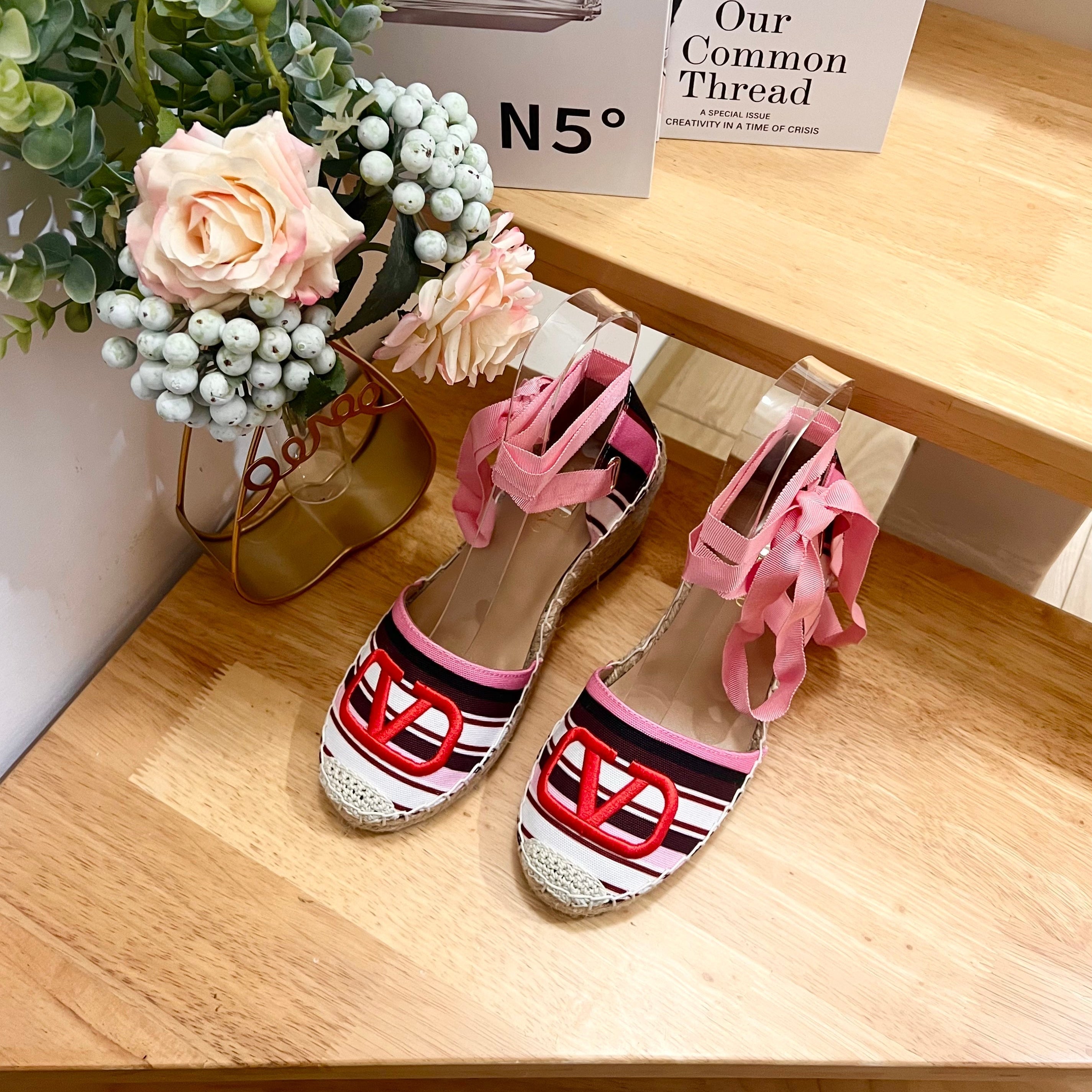 Valentino Espadrille Wedges Multicolor Canvas 240575