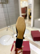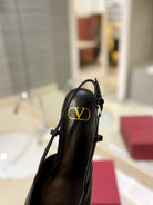 VLOGO BLACK LEATHER SLINGBACK FLATS