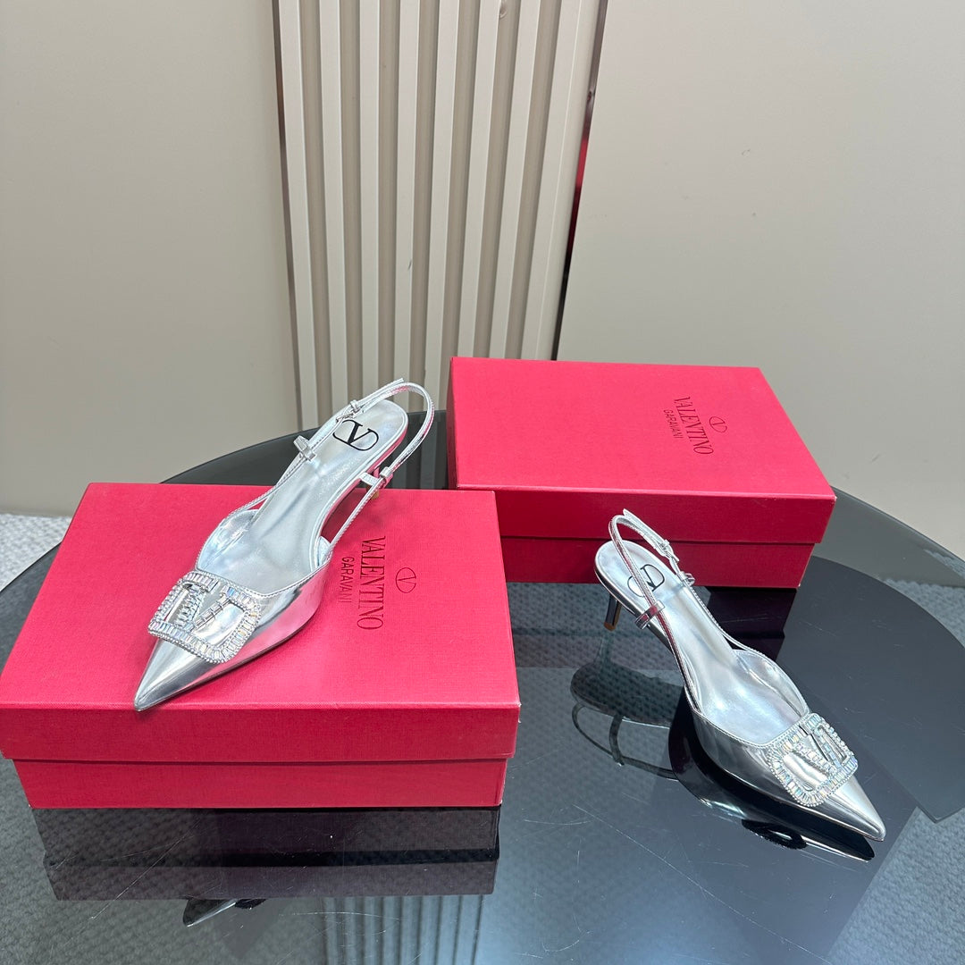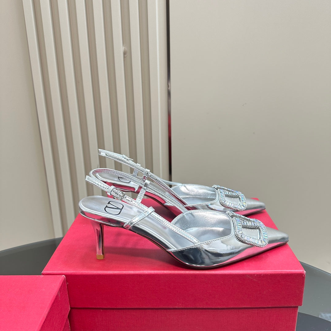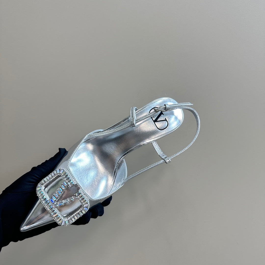 Vlogo Glow Laminated Nappa Leather Slingback Pump 65mm Sliver 999043