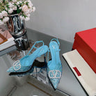 Vlogo Signature Slingback 70 Blue Sky Calfskin With Crystals