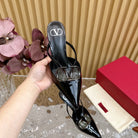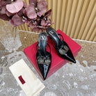 Vlogo Signature with Crystals Cut-Out Slingback Pump 70 Black Calfskin