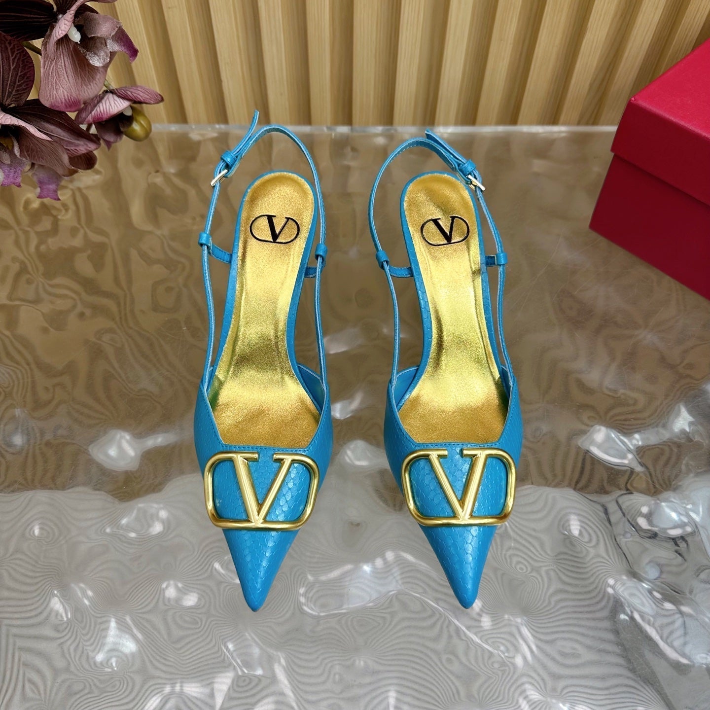 VT 25 Slingback Cerulean Blue Snakeskin Leather 325192