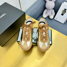 CC SNEAKER IN GOLD CALFSKIN AND SUEDE
