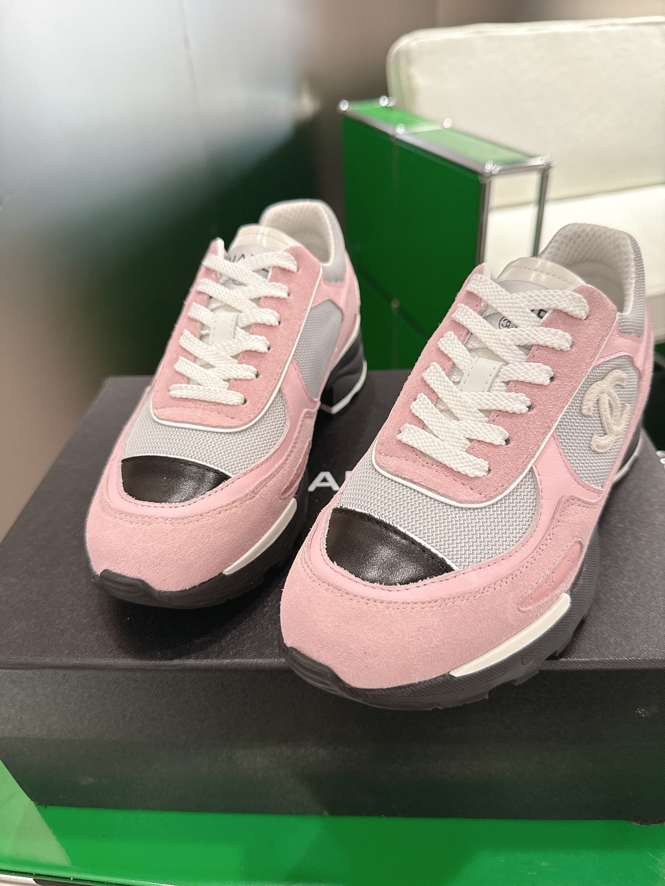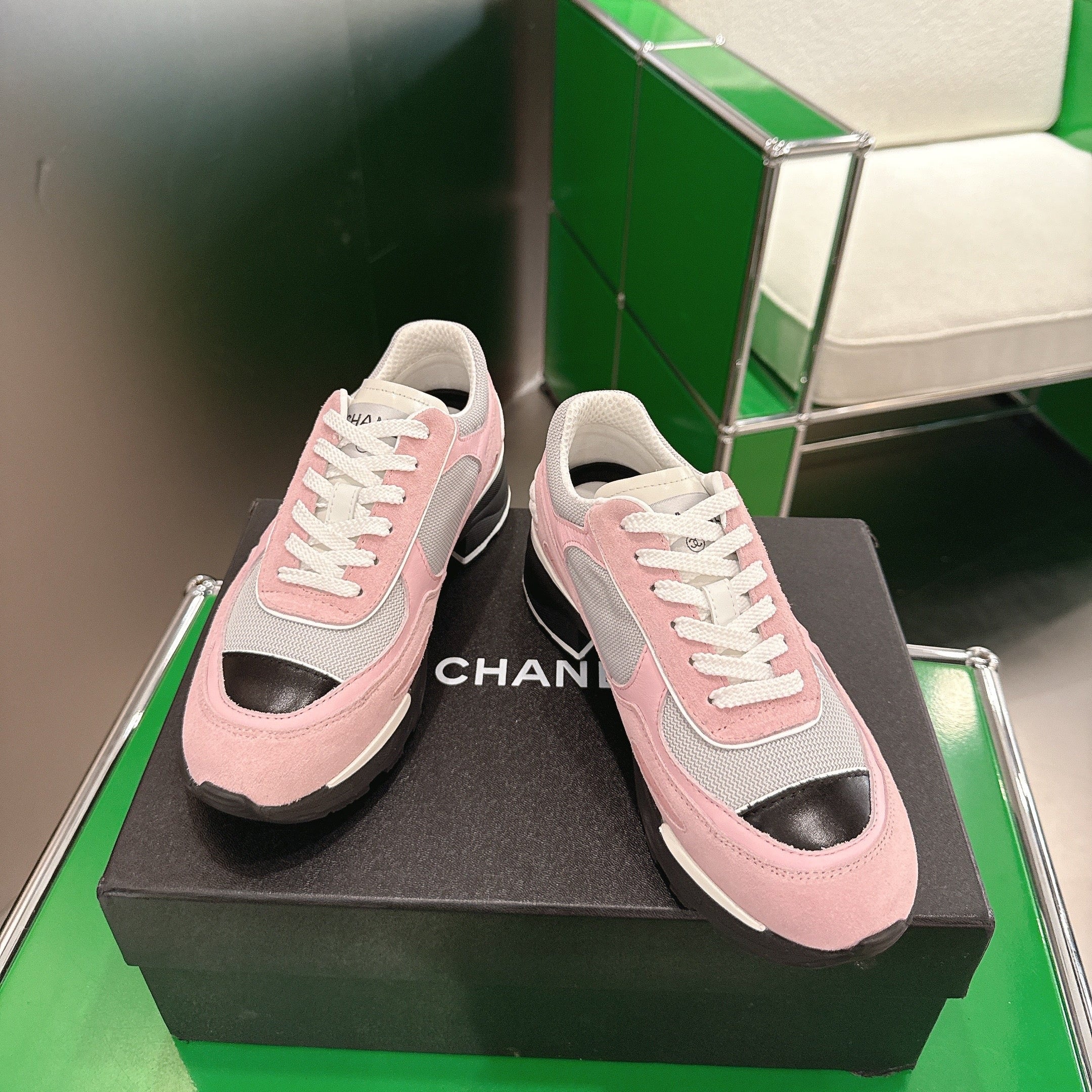 Chanel Low-Top Sneakers 30mm Pink and Grey Calfskin Leather and Mesh 507544