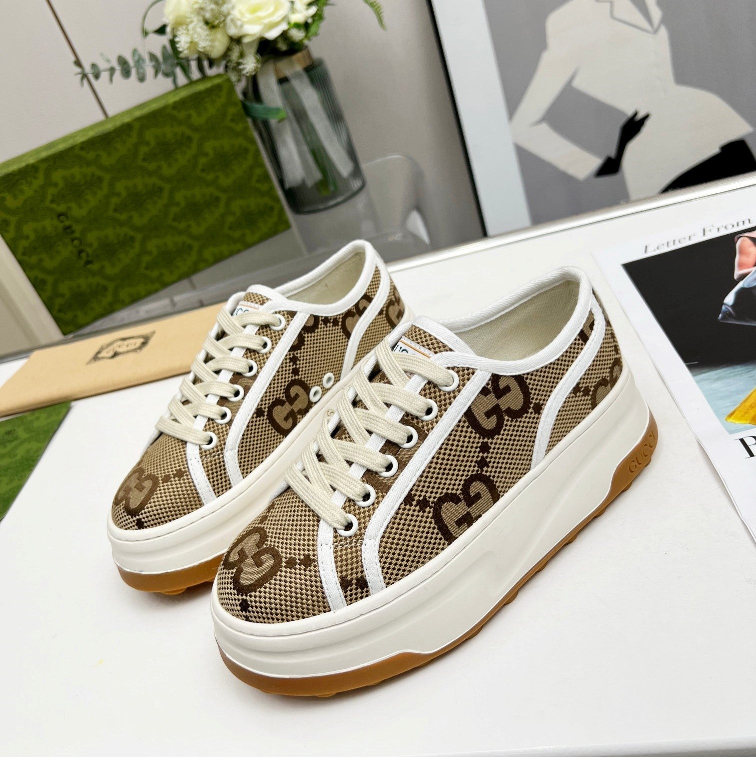 GG Low Top Sneakers 50mm Beige Brown Monogram Canvas 457430