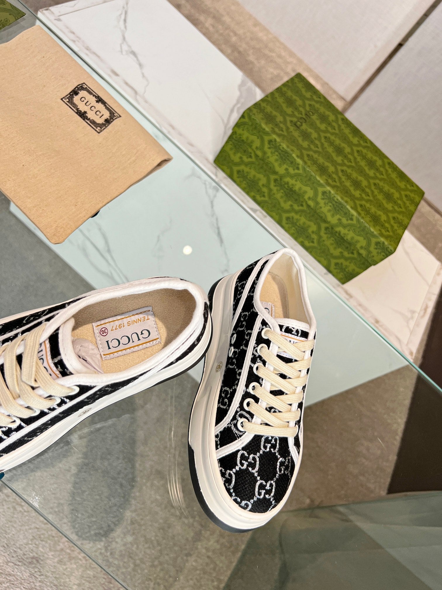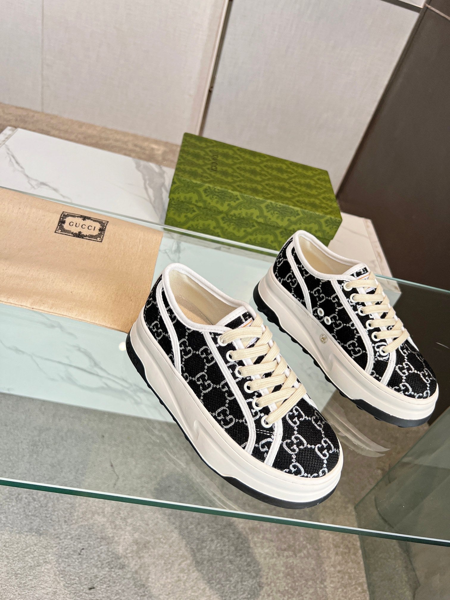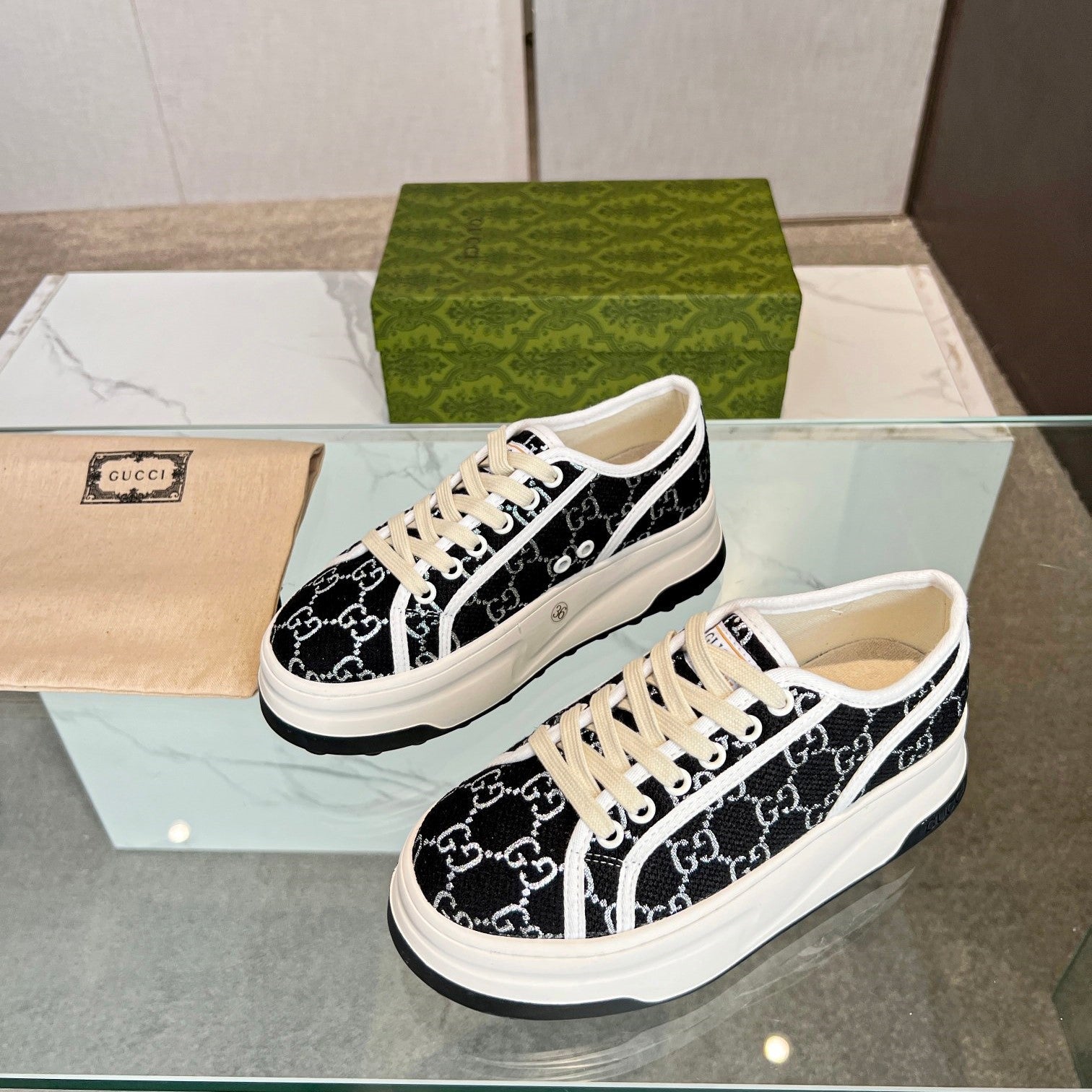 GG Low Top Sneakers 50mm Black White Monogram Canvas 457435