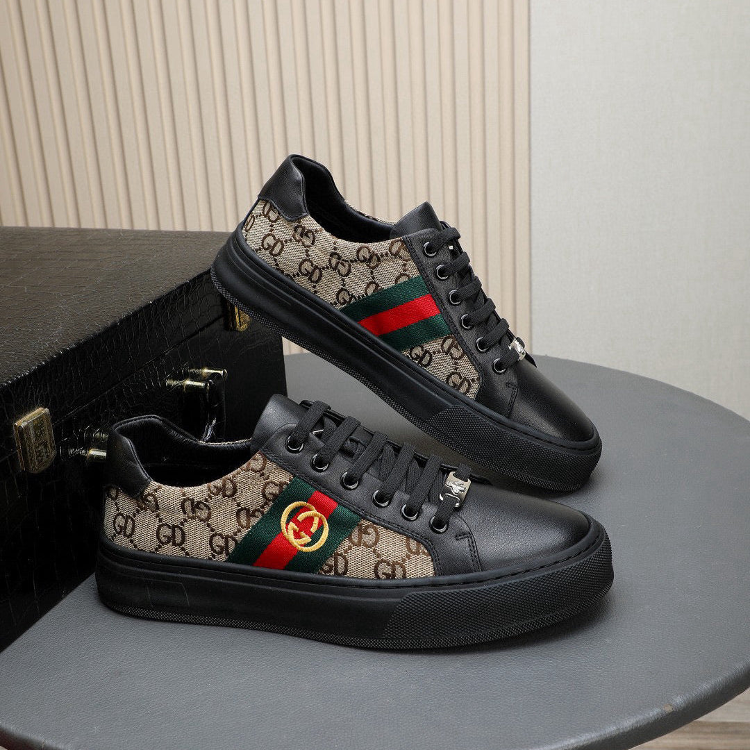GG Men's Ace Sneaker Brown Black Print Fabric 522634