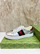 GG Men's ACE Sneaker Silver Calfskin 525953