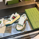 GG Men's Screener Sneaker Brown Green Canvas Sheepskin 523604