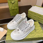 GG Men's Screener Sneaker Cream White Canvas Sheepskin 523603