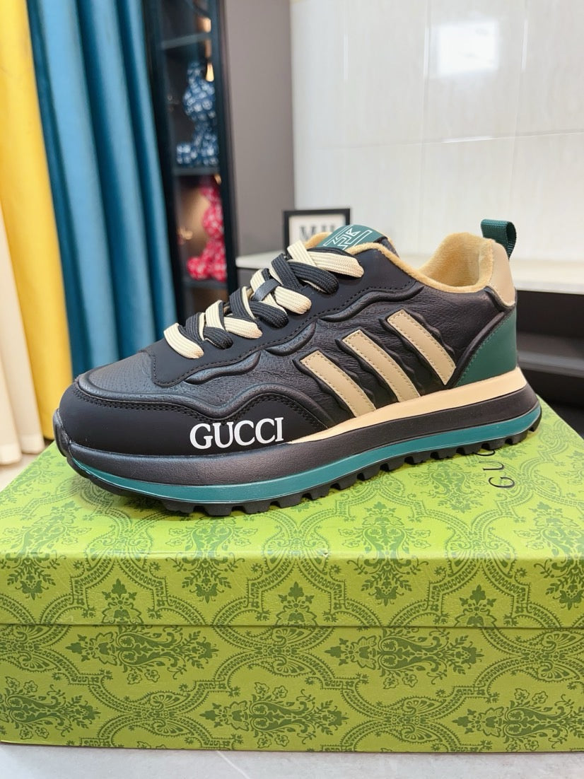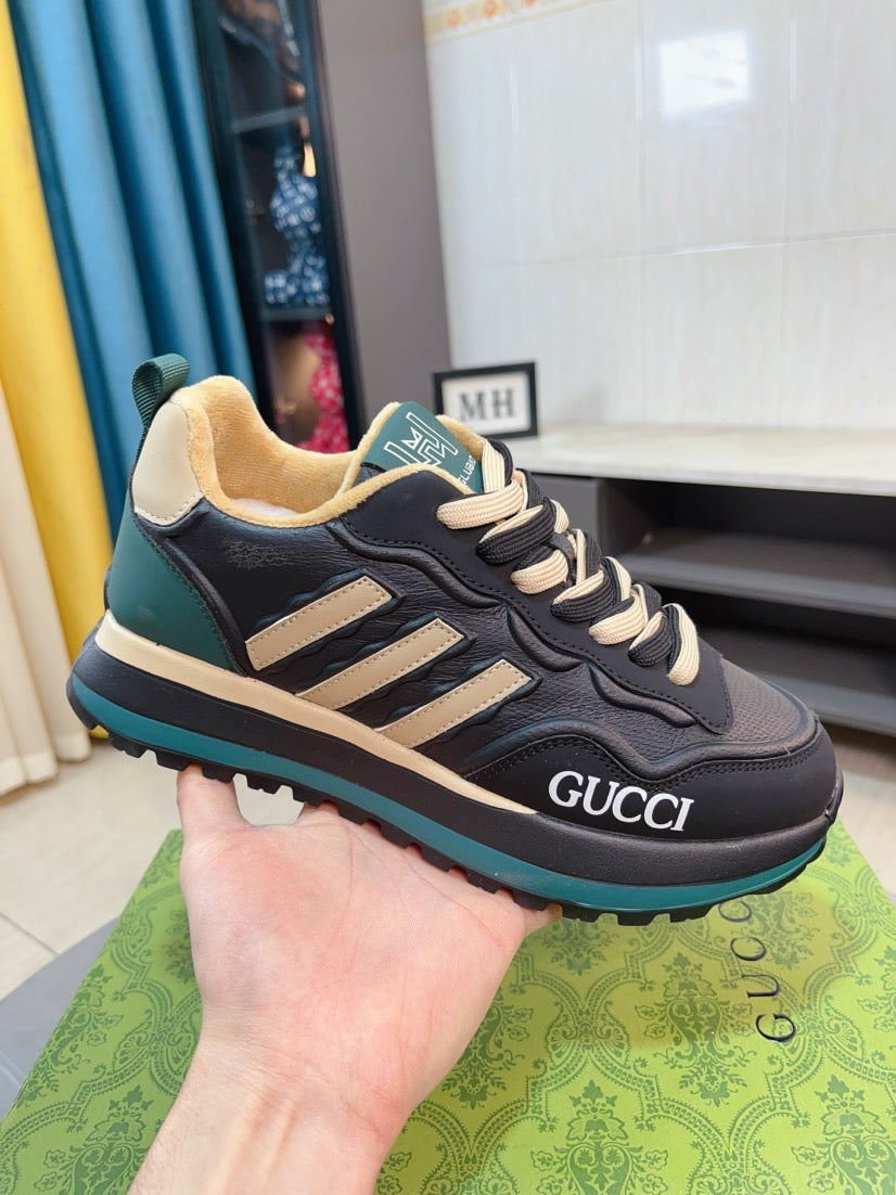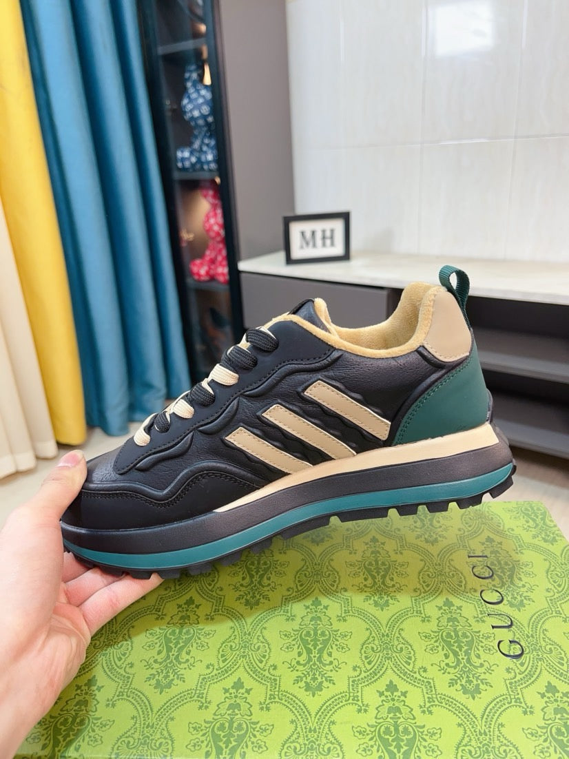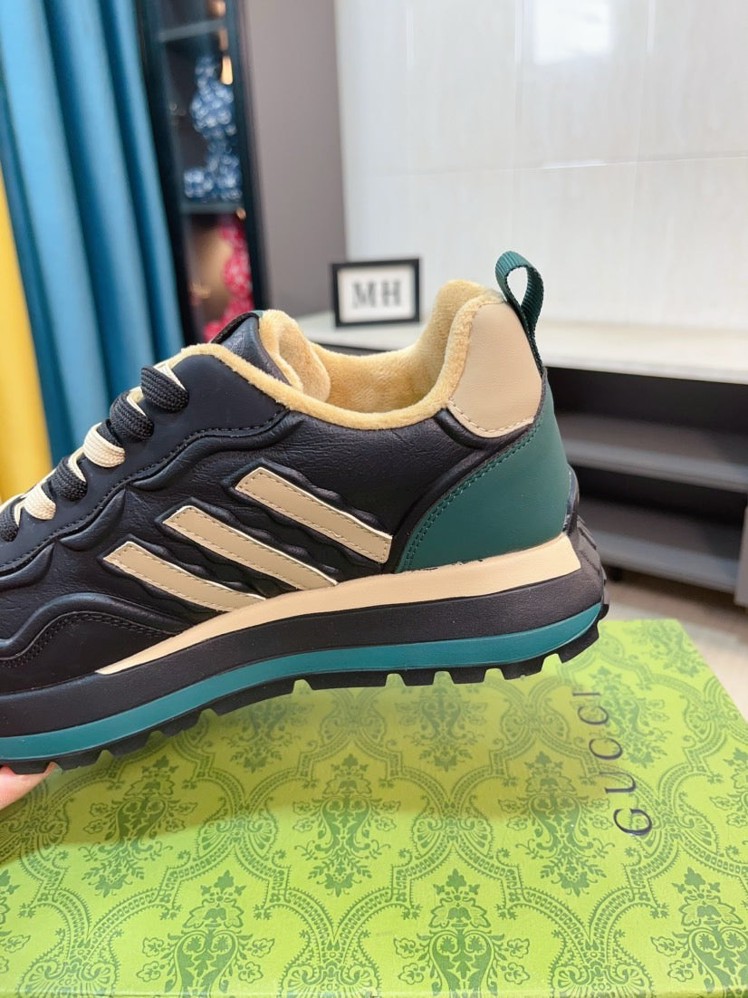 GG Men's Sneaker Black Beige Cowhide 523394