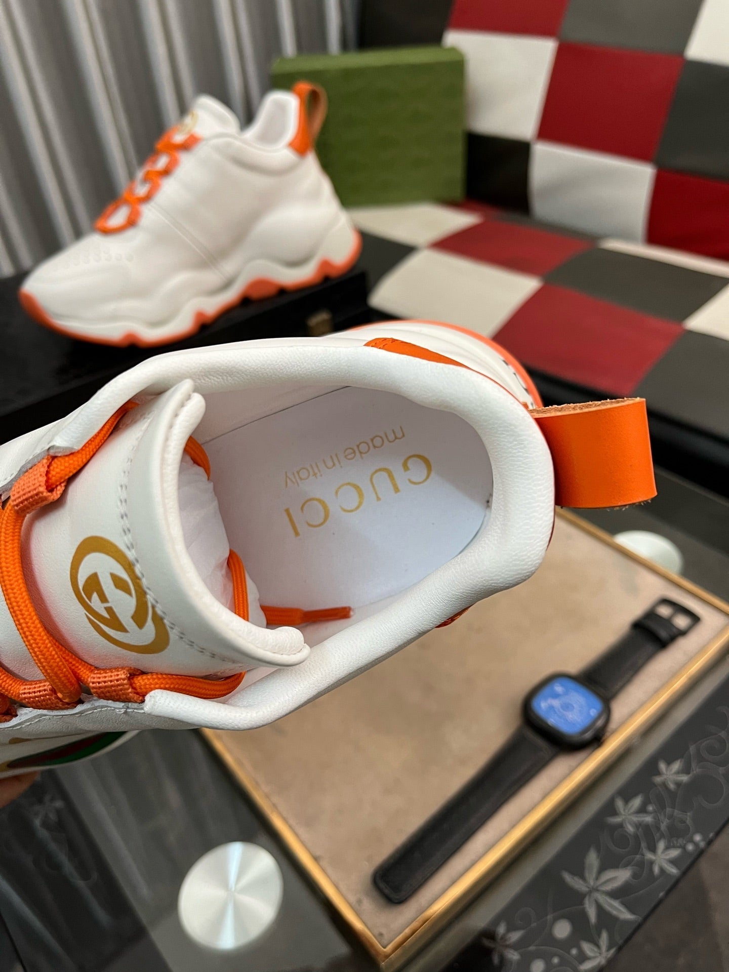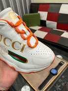 GG Men's Sneaker White Orange Cowhide 529926