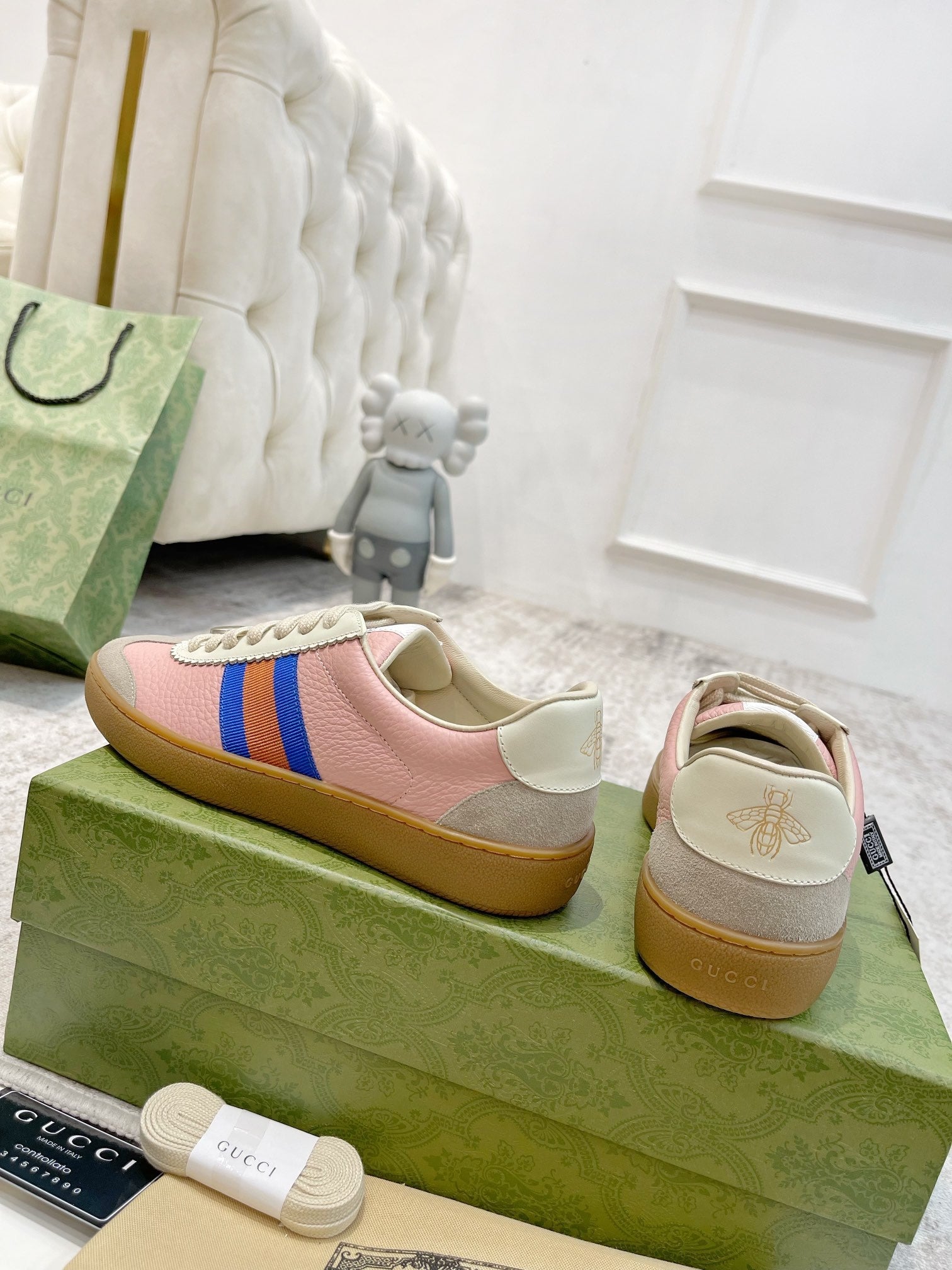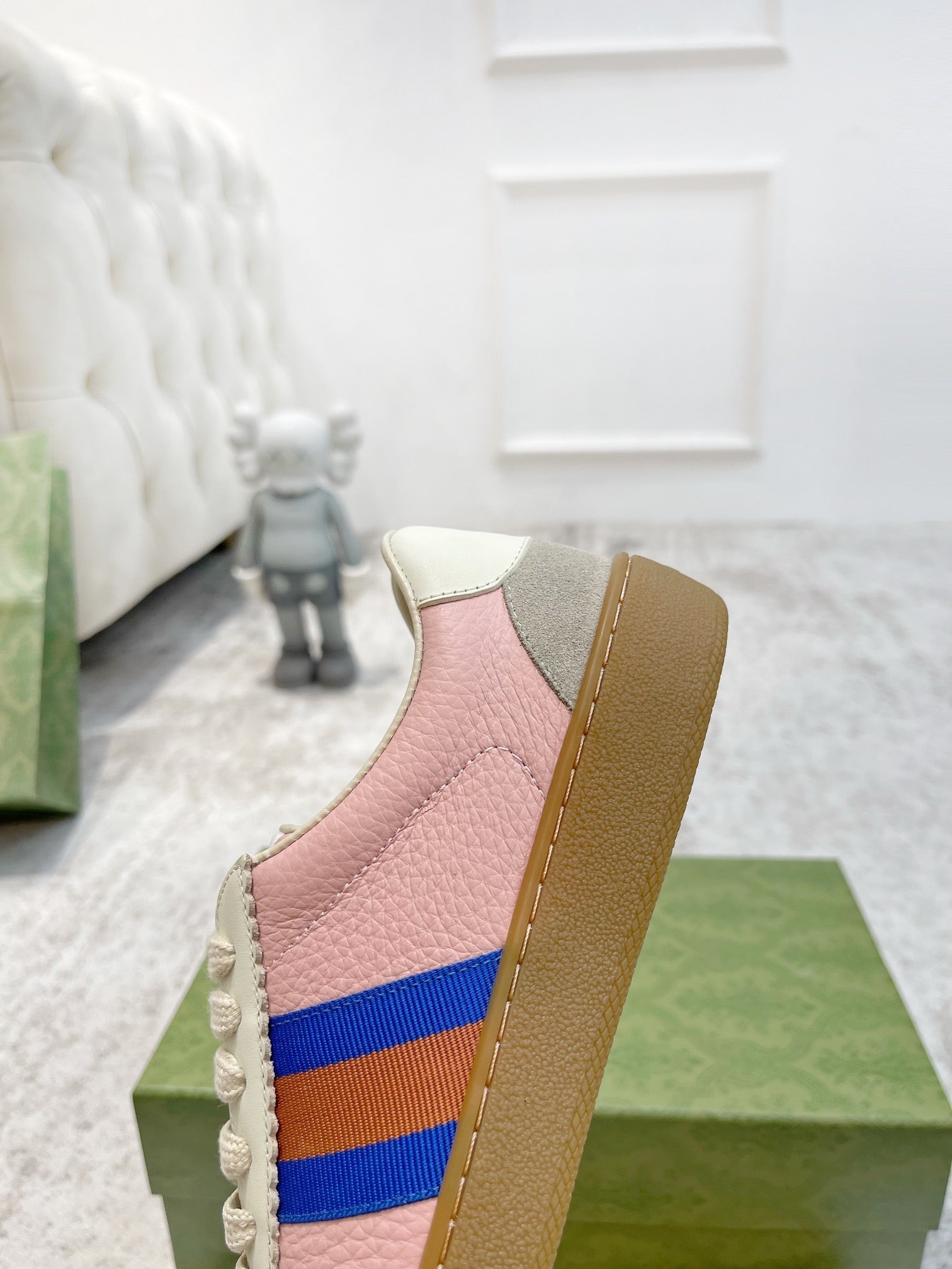 GG Men's Web Sneaker Pink Cowhide Suede 853920