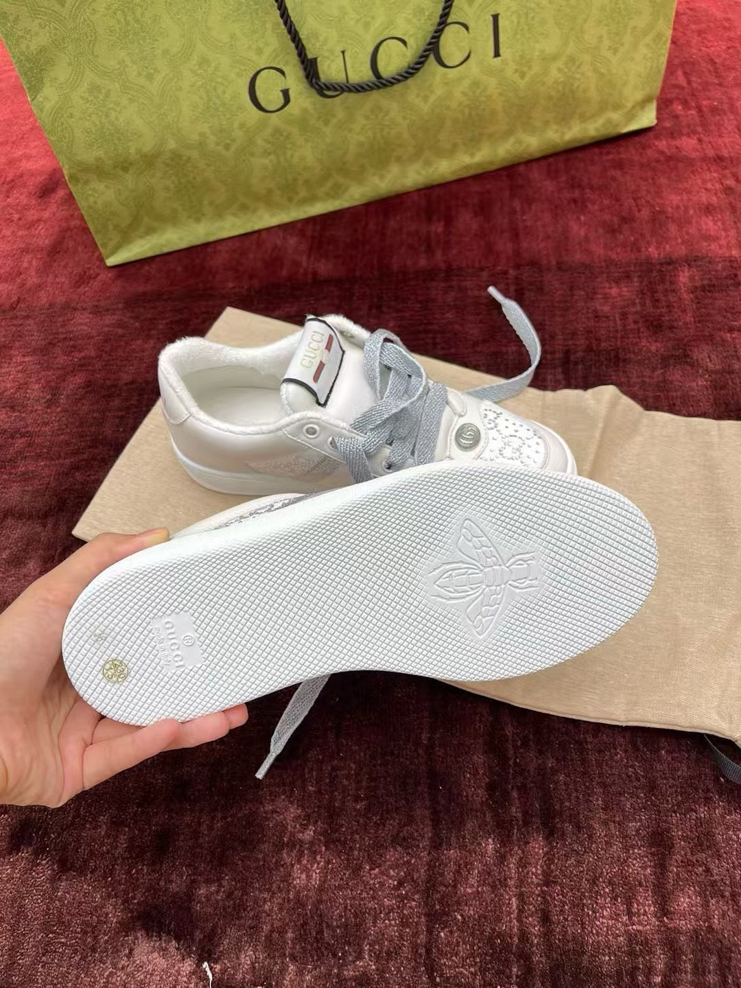 GG Screener Trainer Sneakers White Light Grey Cowhide Frabic 502168
