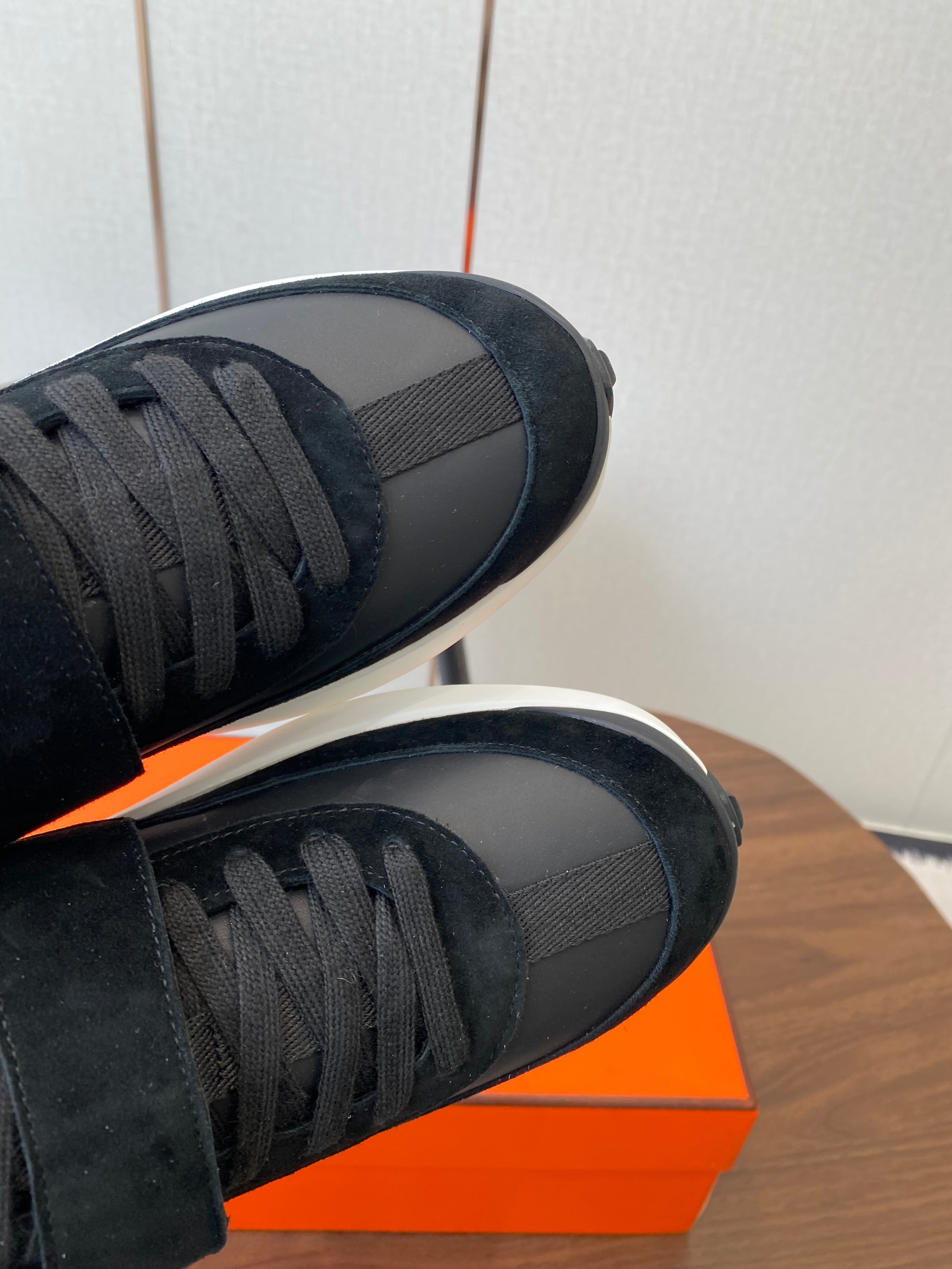 HM couple's sneakers black white beige suede