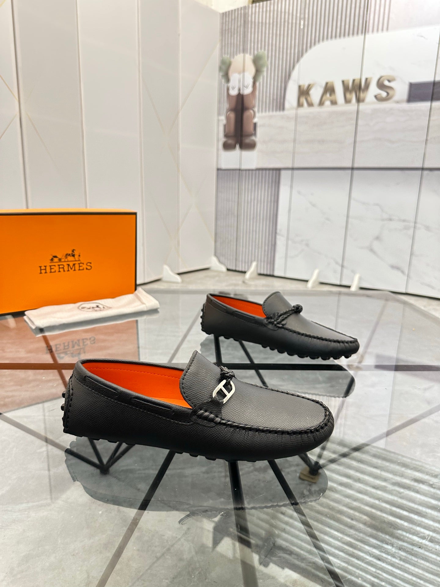 HM Men's Alessandro Loafer Black Orange Embossed Cowhide 697693