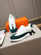 HM Men's Bouncing Sneakers White Green Sheepskin Suede 664382