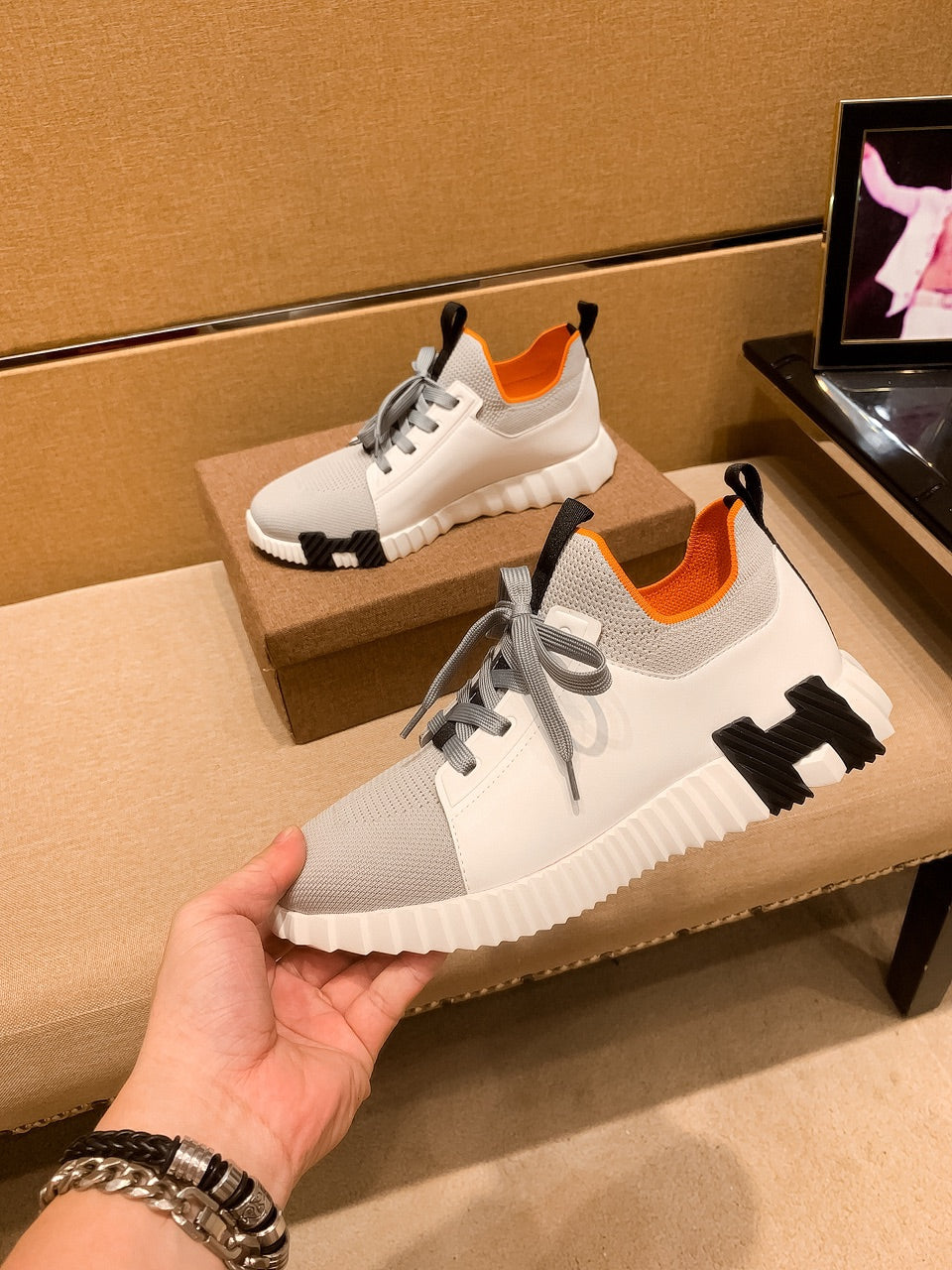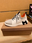 HM Men's Depart Slip-on Sneaker White Grey Knit Cowhide 263685