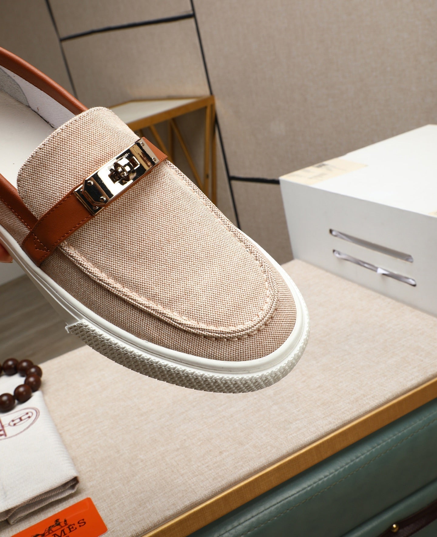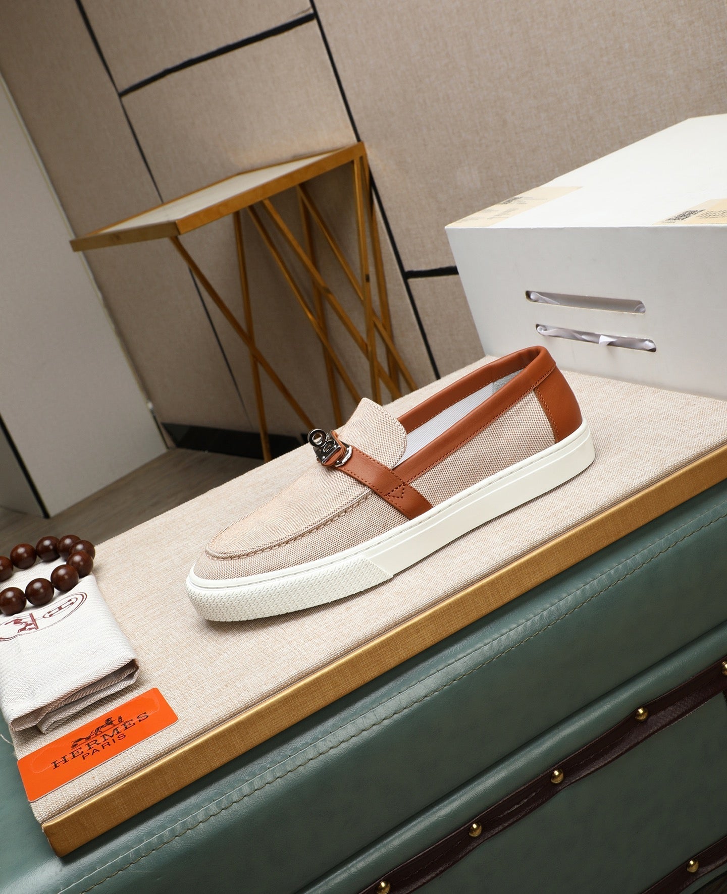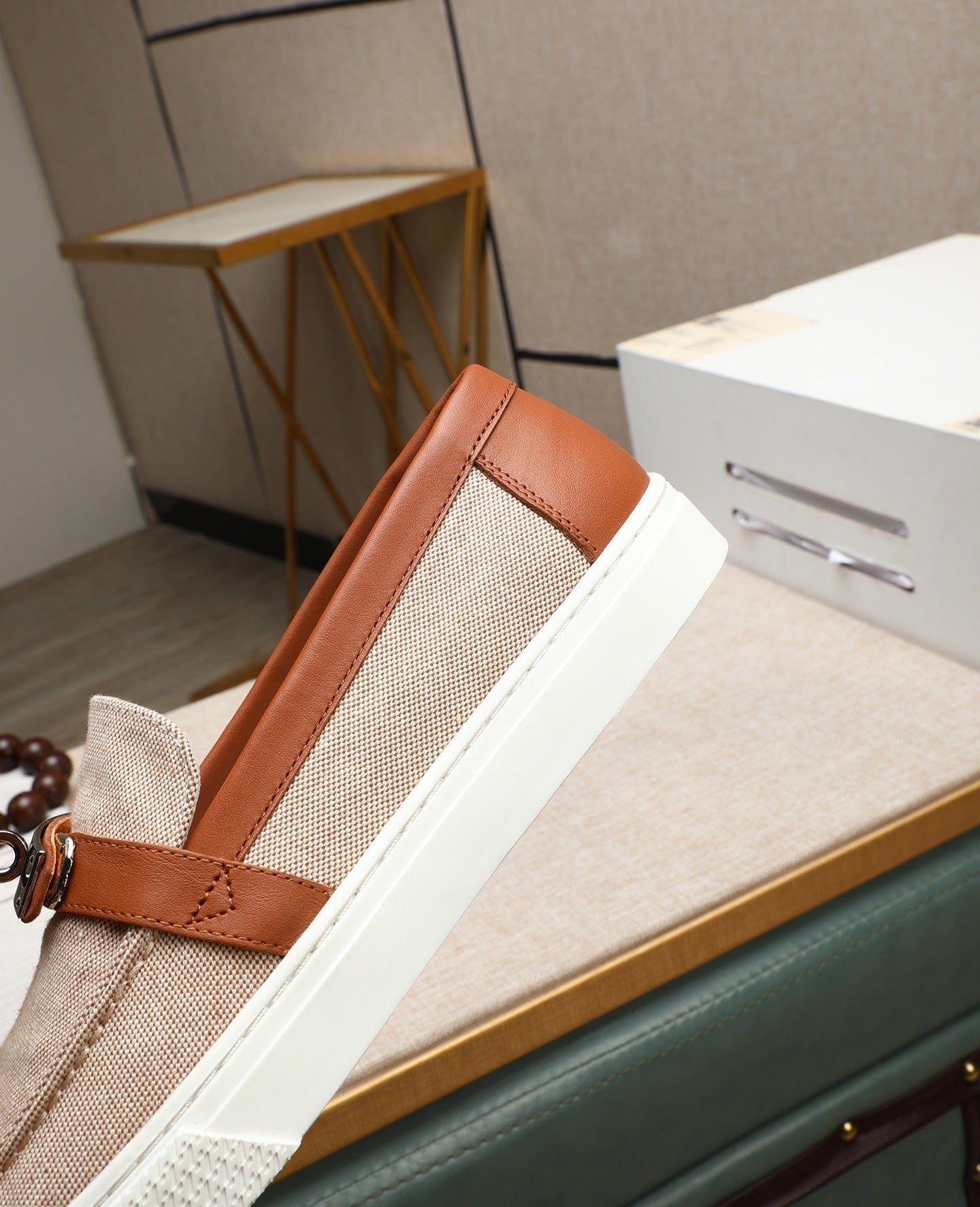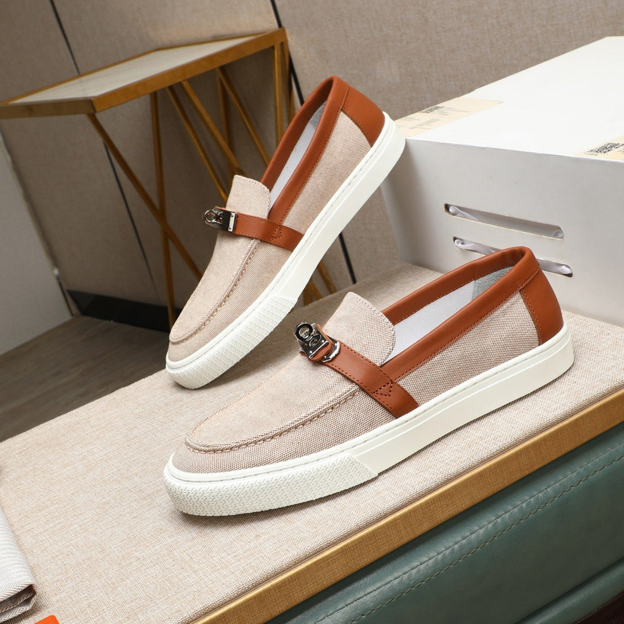 HM Men's Game Slip-on Beige Brown Denim Cowhide 712267