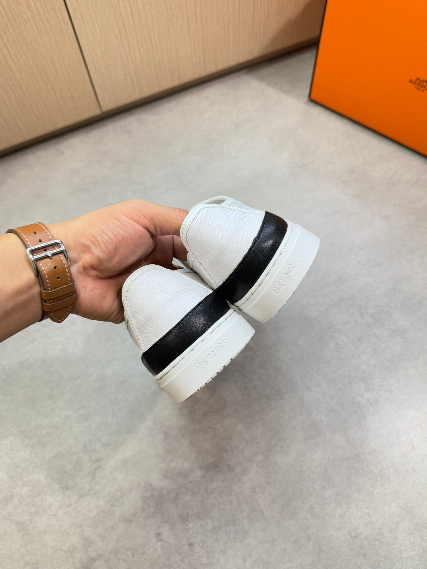 HM Men's Get Sneaker White Denim Calfskin 696209
