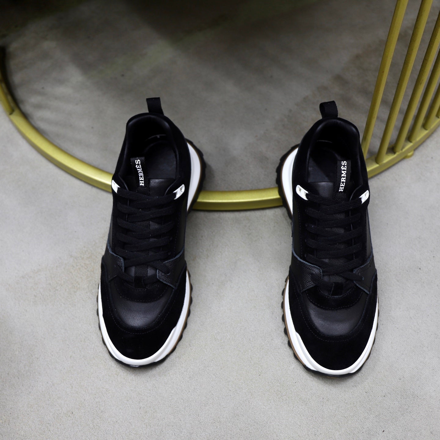 HM Men's Leader Sneaker Black Suede Calfskin 747919