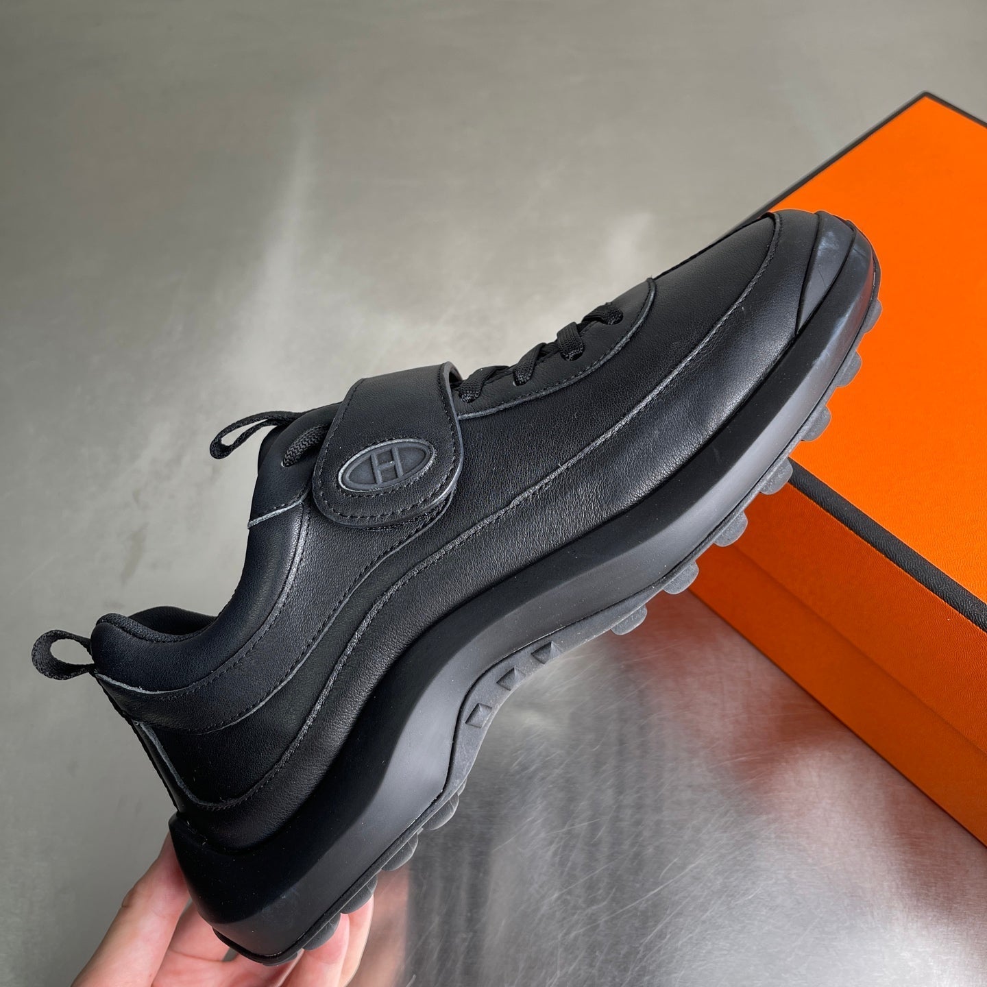 HM Men's Loop Sneaker Black Calfskin 741469