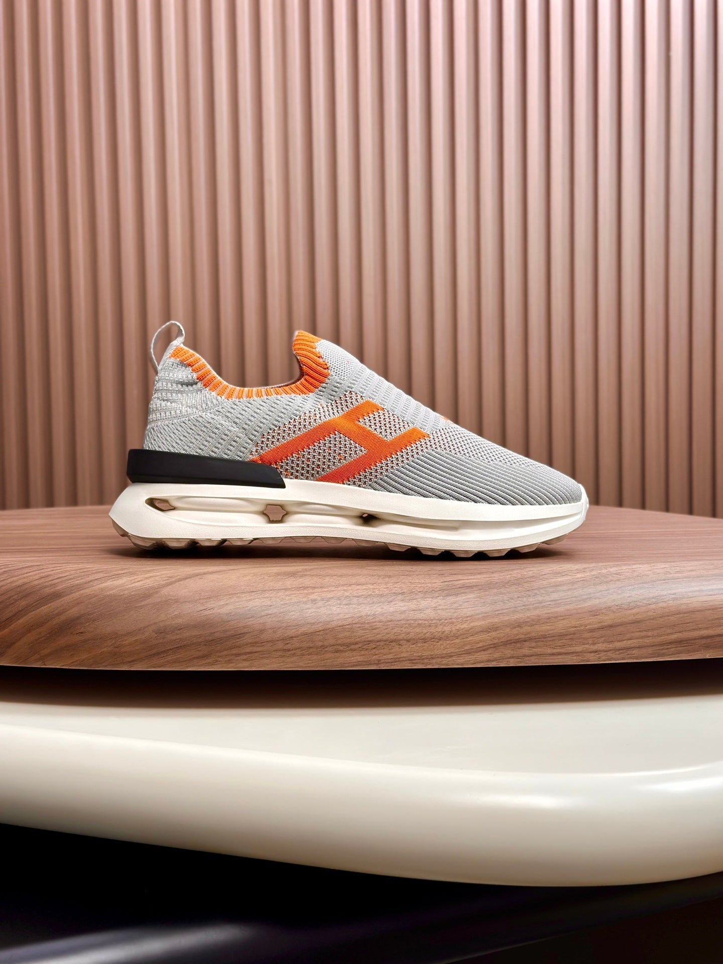 HM Men's Slip on Sneaker Grey Orange Flyknit Fabric 690060