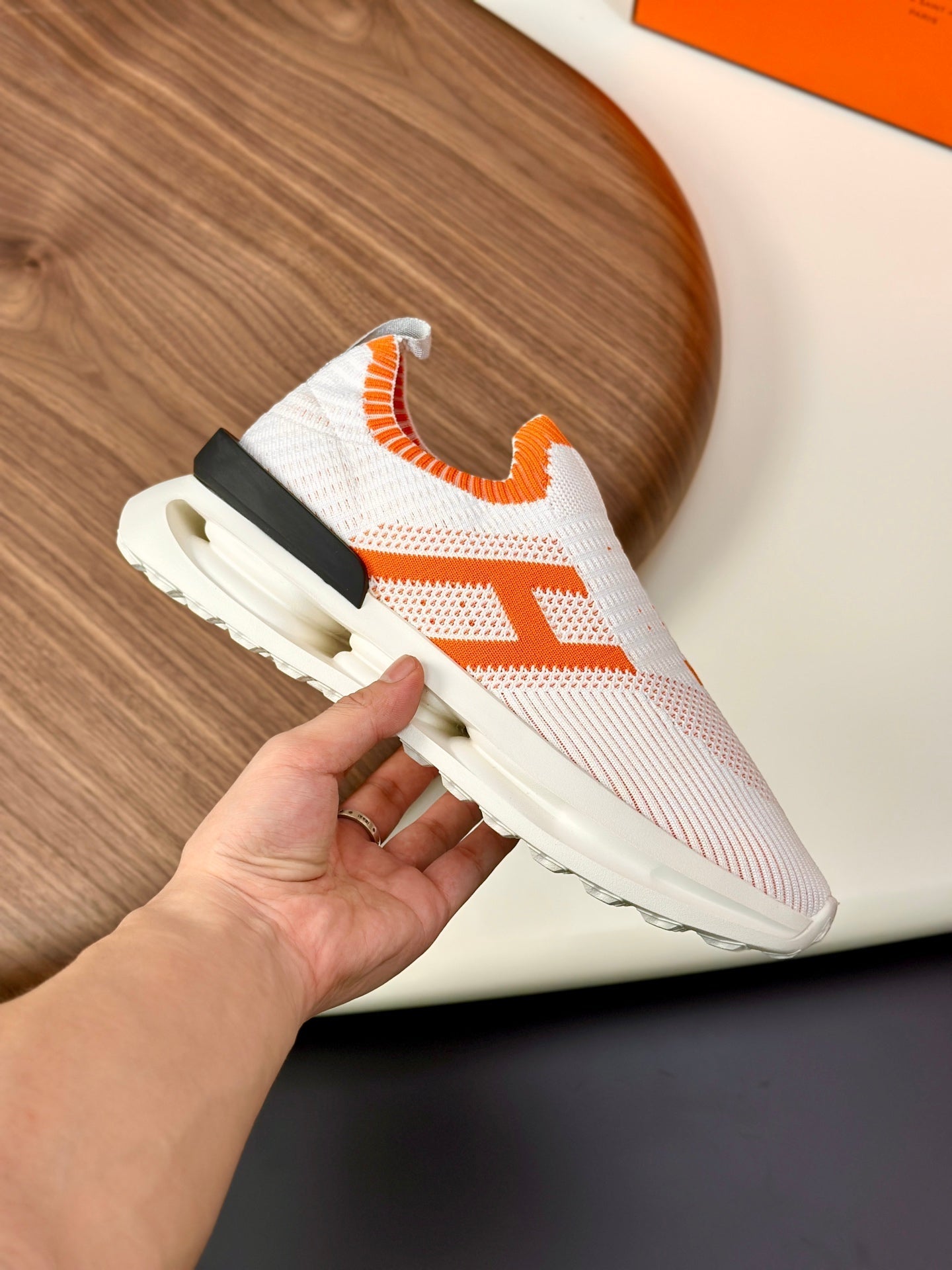HM Men's Slip on Sneaker White Orange Flyknit Fabric 690061